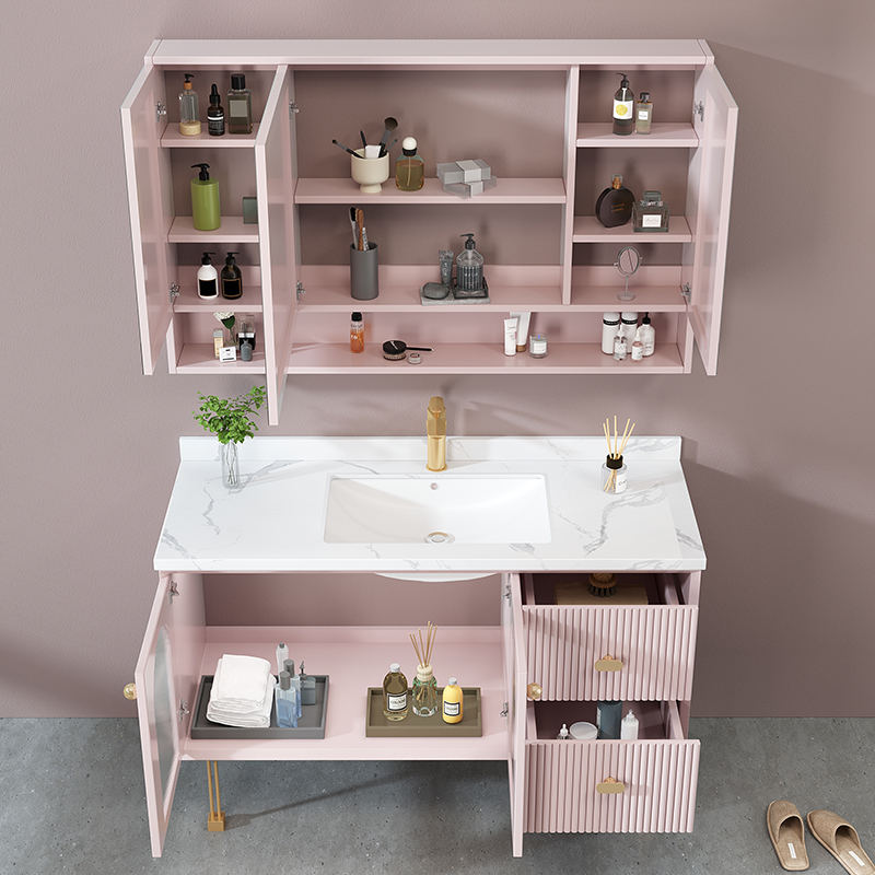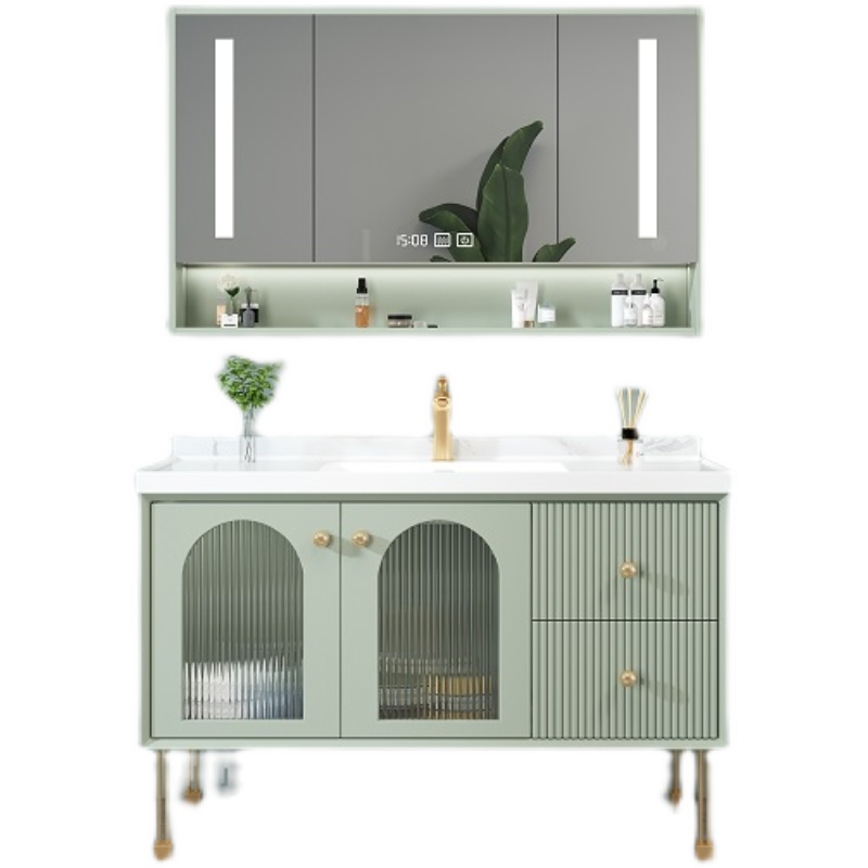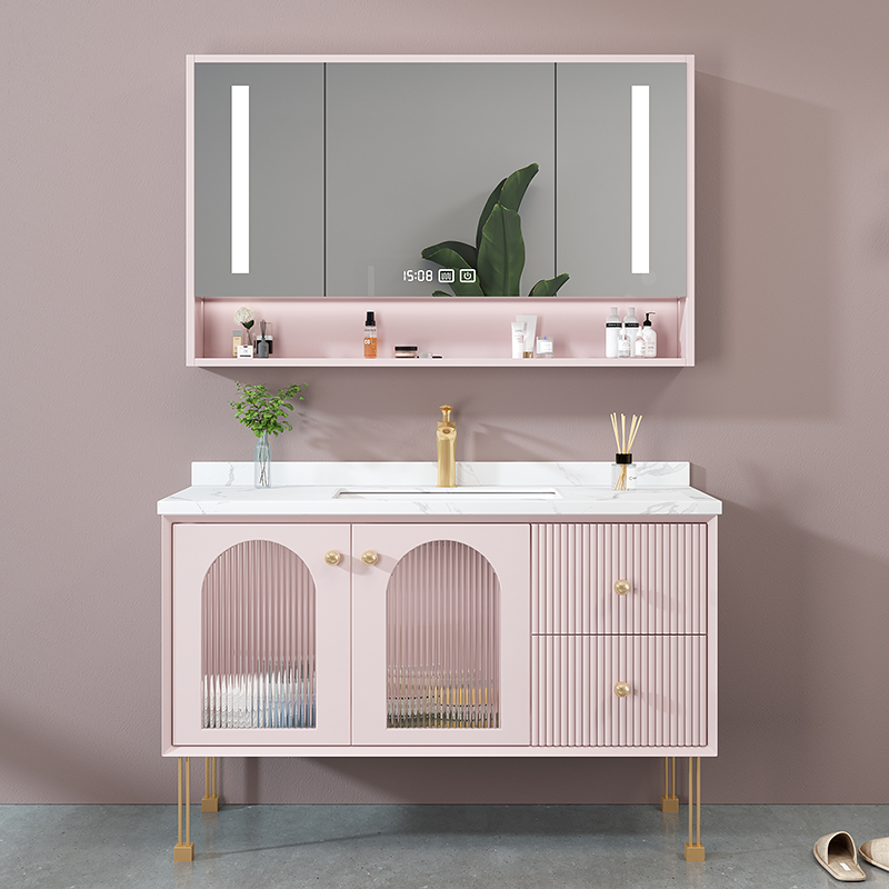 American Light Lavish Rockboard Solid Wood Bath Cabinet Cabinet Combination Modern Glass Door Intelligent Mirror Handwashing Washbasin Wash Table