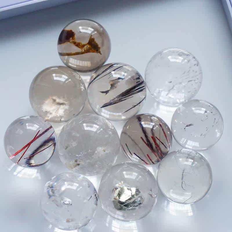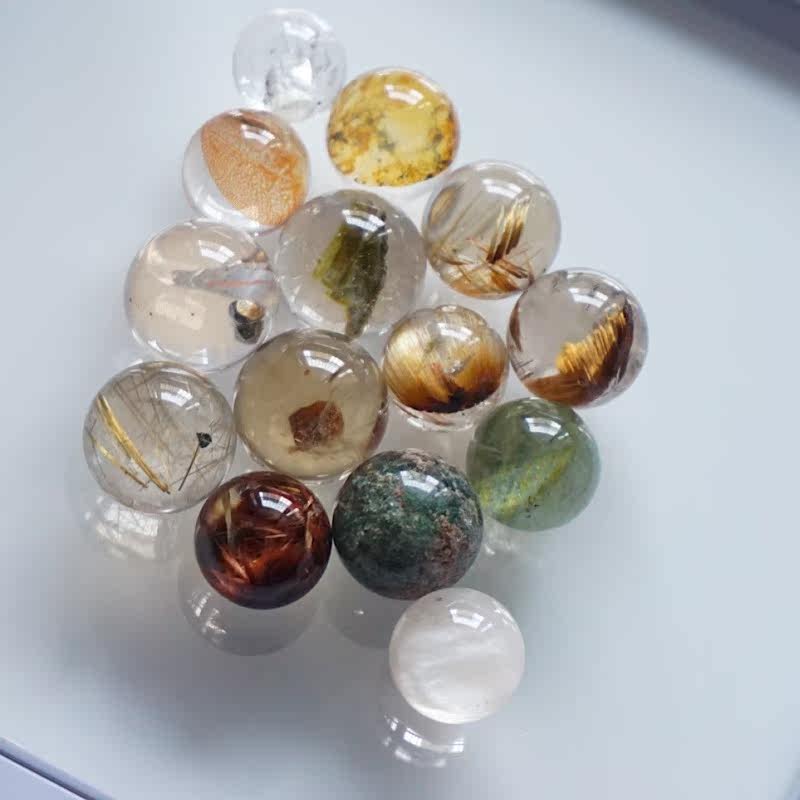 Natural water crystal ball wrap specimen red grain green ghost mica blond crystal mirror iron ore crystal garnet rabbit hair