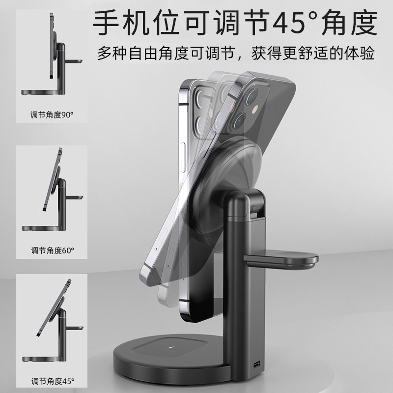 White-three-in-one magnetic suction charging bracket with night light black-three-in-one magnetic suction charging bracket with night light white-three-in-one magnetic suction charging bracket with night light (18w quick-charge head package)