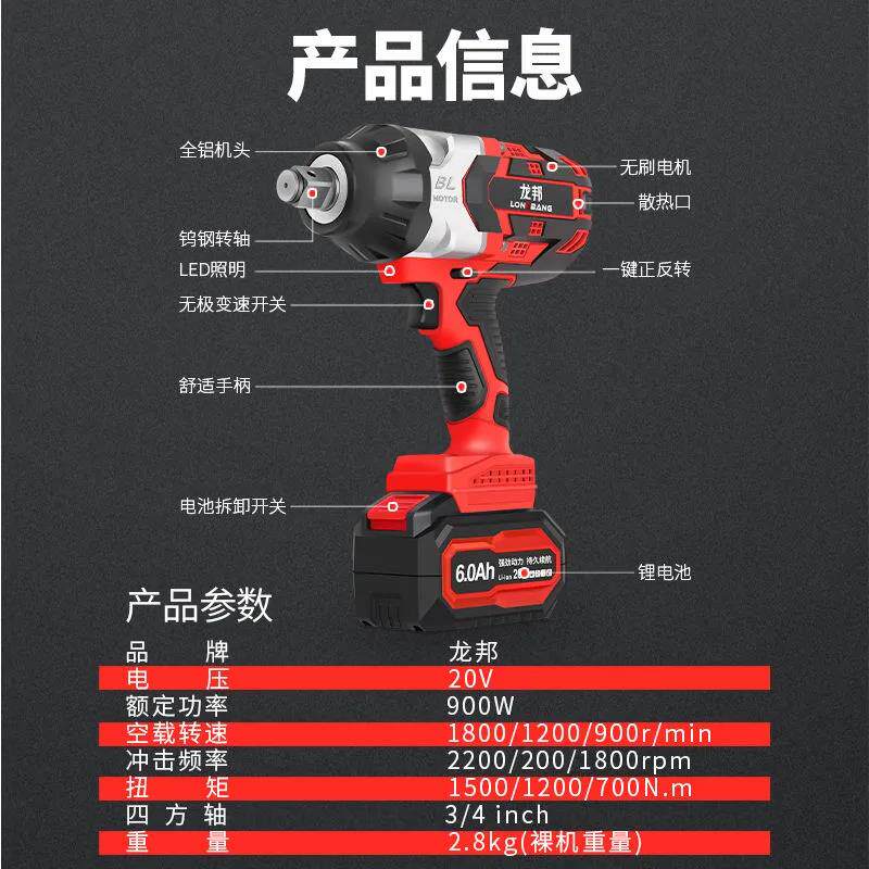 Ryong Bang 1500 Bull Electric Pneumatic Wrench Wrench Super Torque Steam Repair Tower Crane steel construction lithium battery mobile phone battery hand