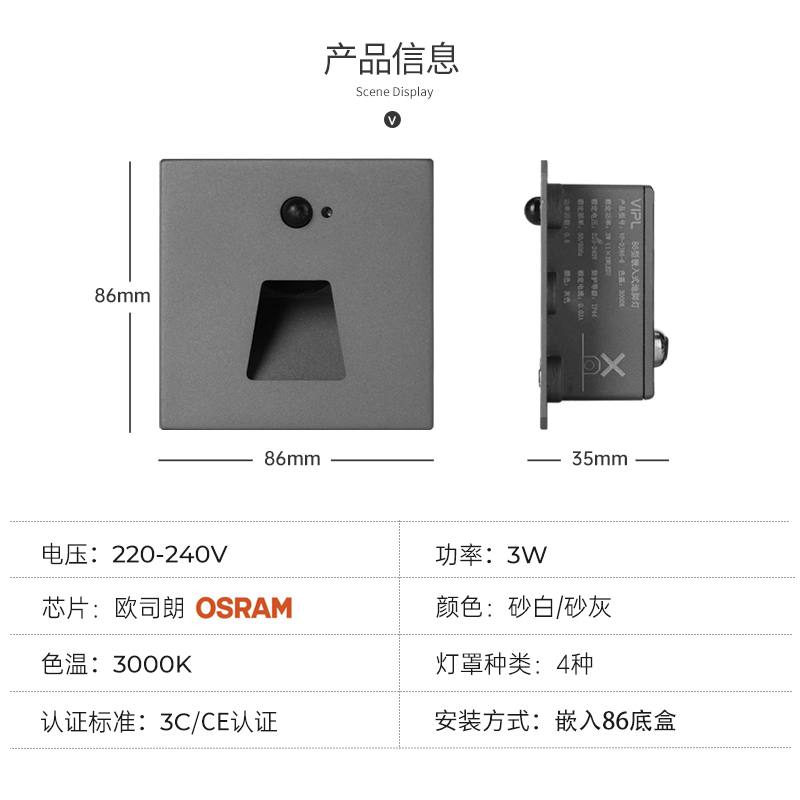 led foot lamp stair step lamp aisle steps corridor embedded 86 type human body light induction magnetic night lamp