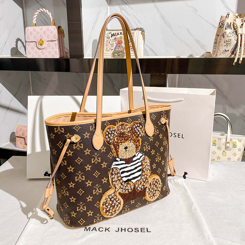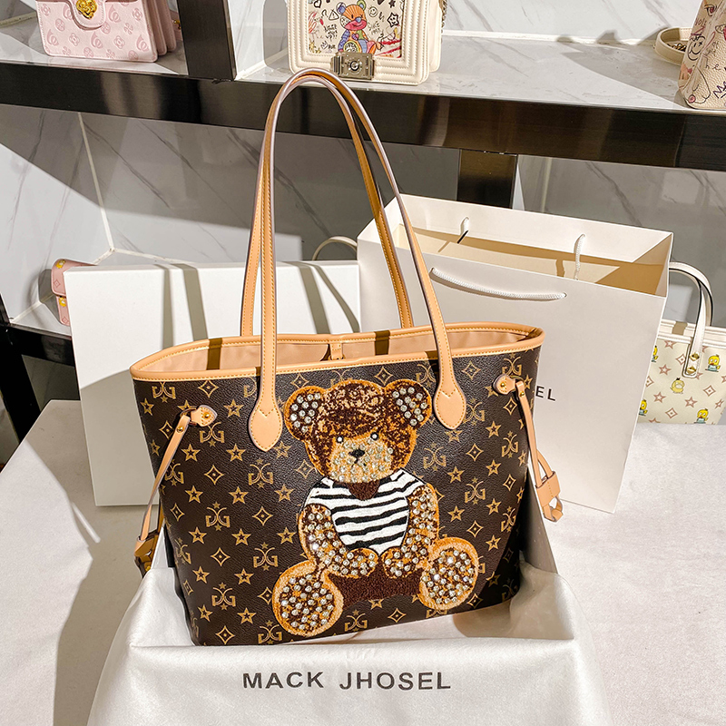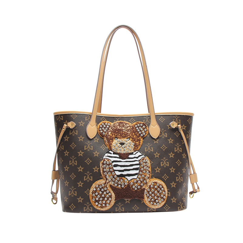 CHEROSE KEITH niche leather bear big bag large capacity tote bag 2022 new trendy commuter bag