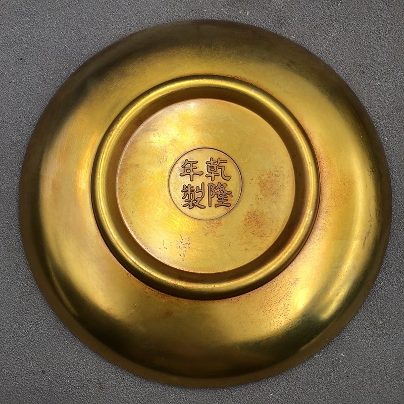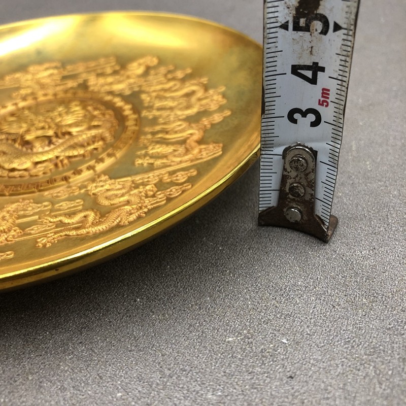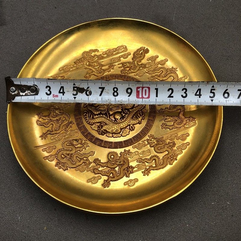 Antique Miscellaneous copper plate Jiulong plate medium home craft decoration gilt antique bronze ware