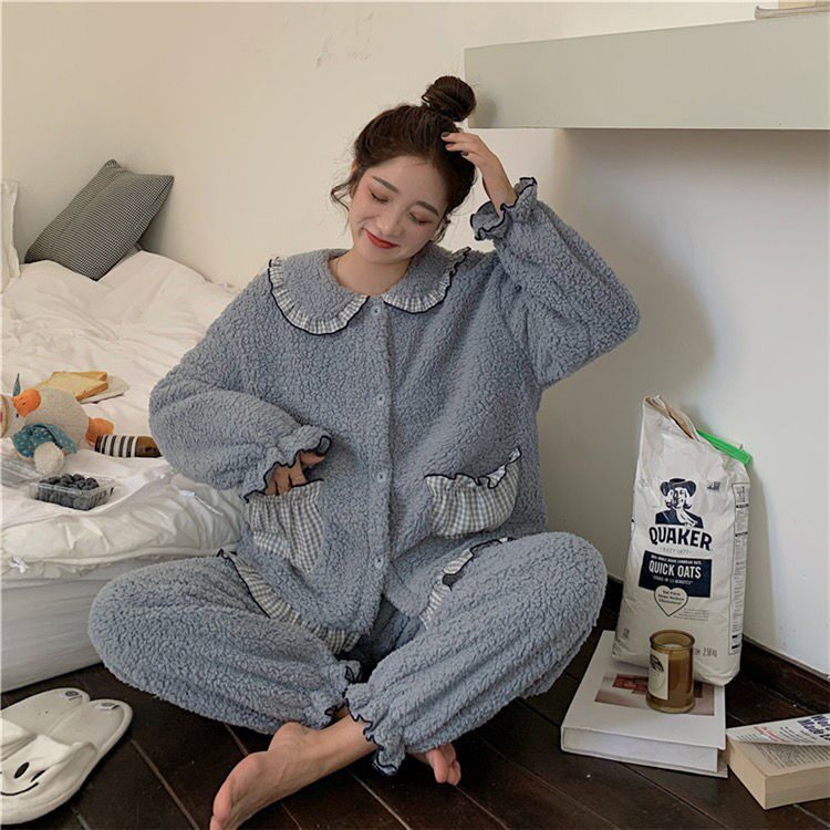 Glint Thickened Pyjamas Woman Autumn Winter Suit Students Can Outwear Cute Dolls Collar Tennis red Warm Family Clothing