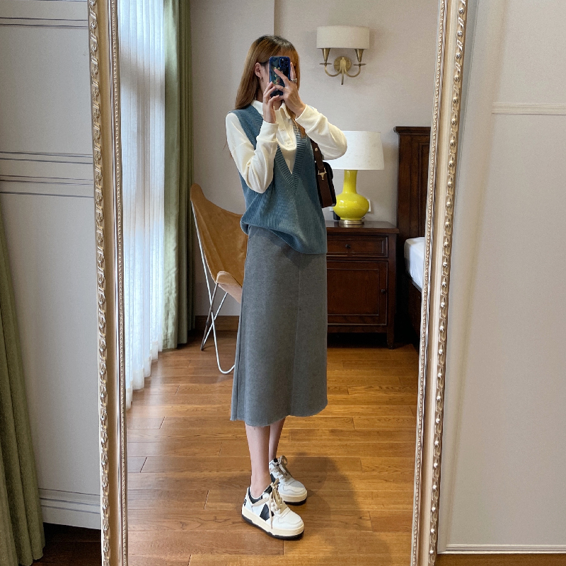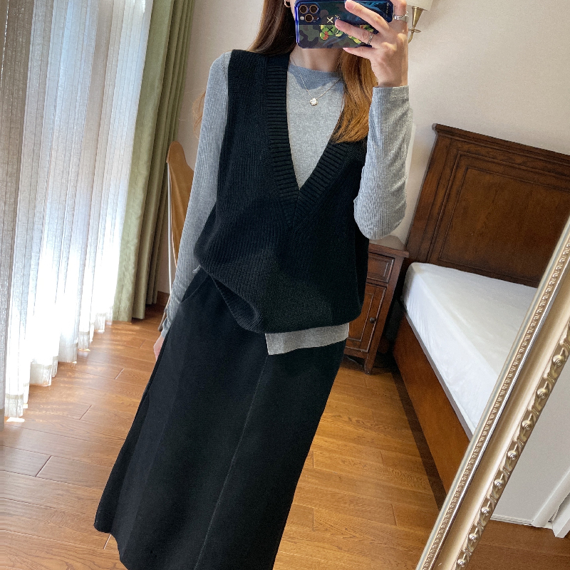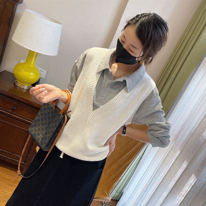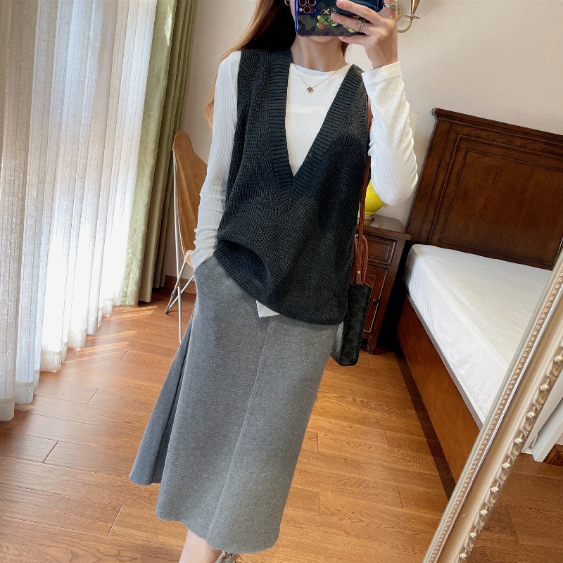 Limited-edition cow goods layered simple big V-neck soft glutinous customer for woolen white vest vest knitted women 2021 spring and autumn