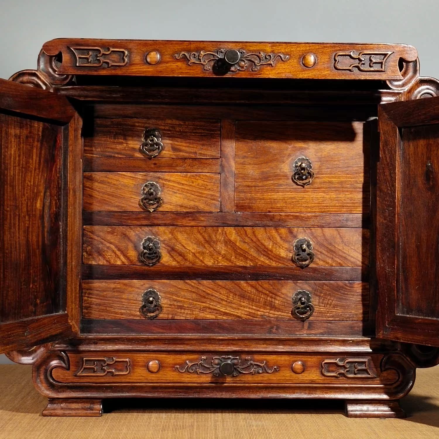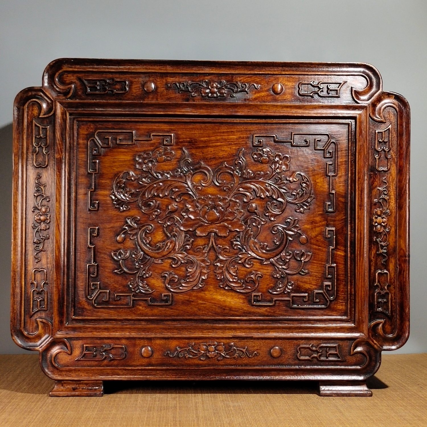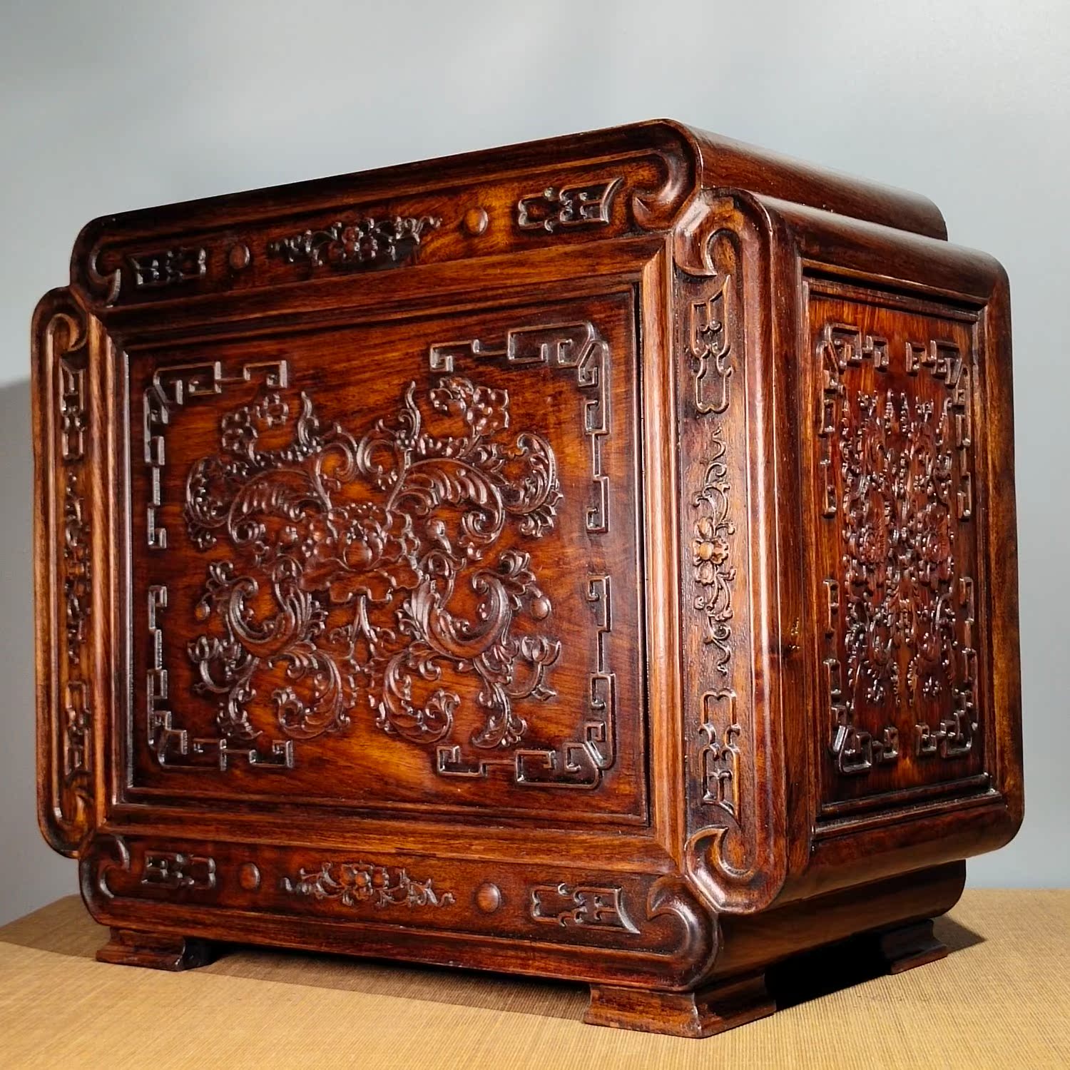 Ancient Play Miscellaneous Collection Wooden Ware Collection Treasured Flowers Pear Wood Relief Tangled Lotus Flower Multifunction Cabinet Home Swing Accessories