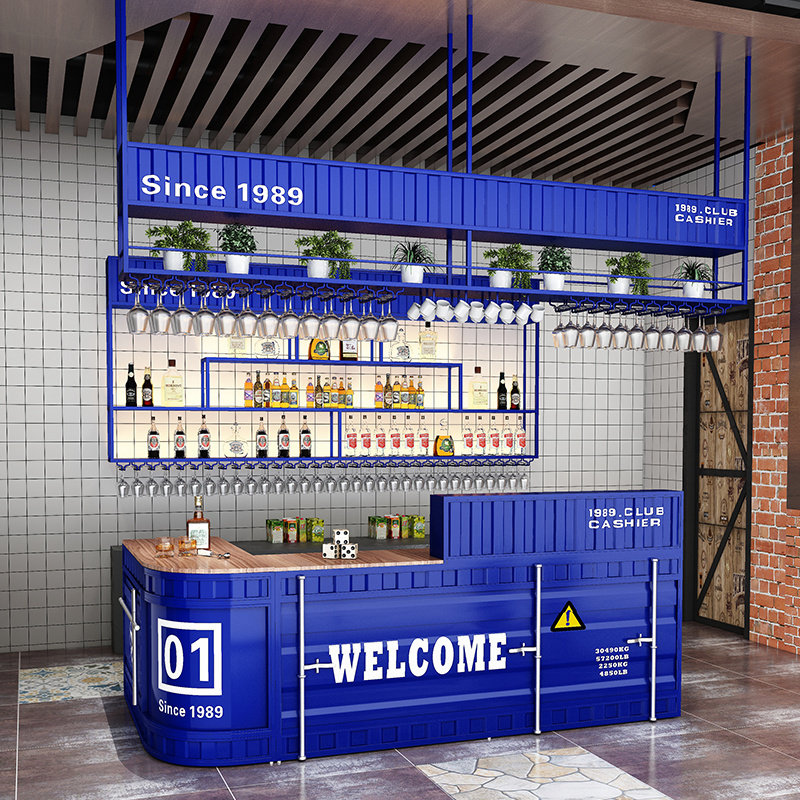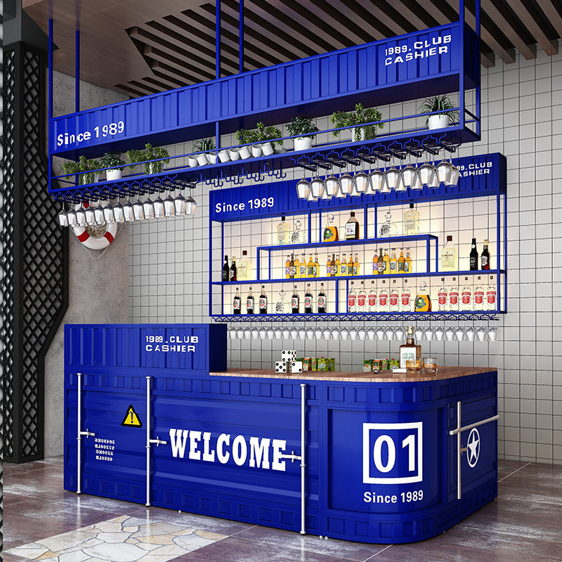 Retro cashier counter bar bar milk tea shop industrial style container creative corner gym reception front desk
