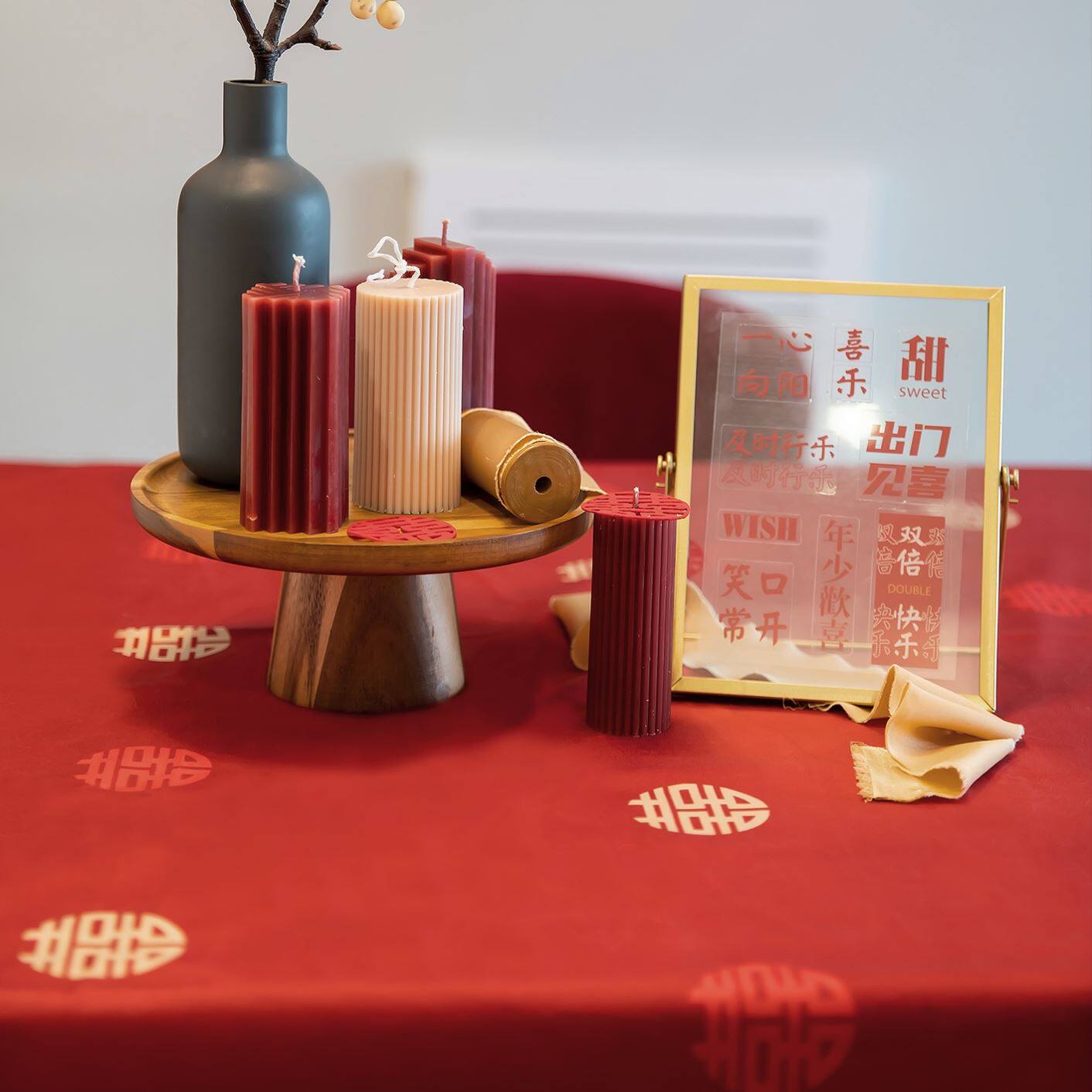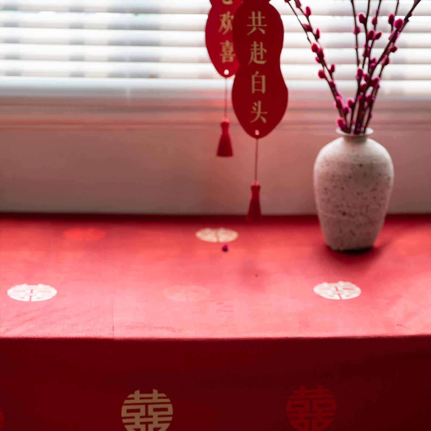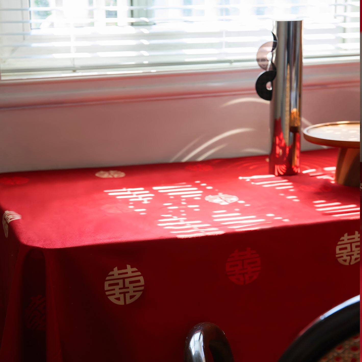 Red tablecloth engagement happy word coffee table table cover cloth wedding special decoration new Chinese square table arrangement