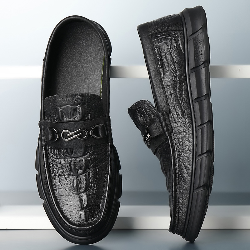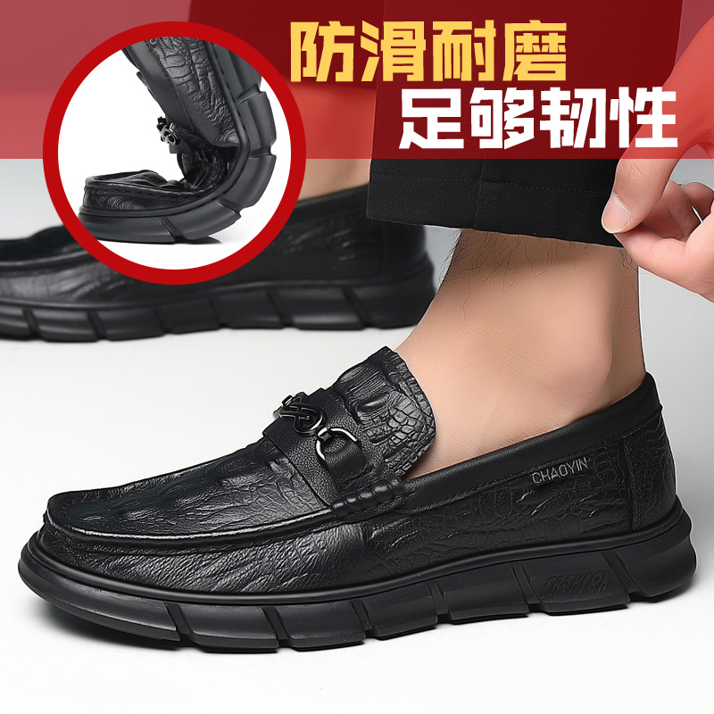 Mulinsen men's shoes spring new casual leather shoes men's leather British slip-on high-end crocodile soft-soled Peas shoes
