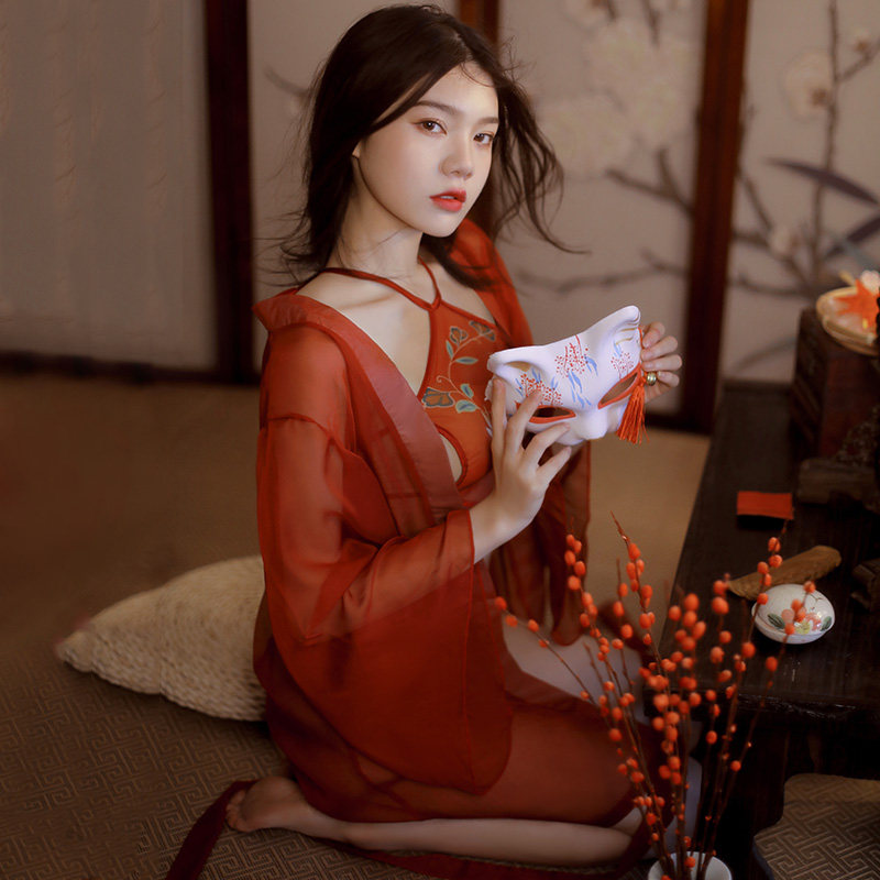 Sexy pajamas women's Xia Bingsi thin section sexy girl temptation underwear ancient style Hanfu apron uniform exposed women's clothing