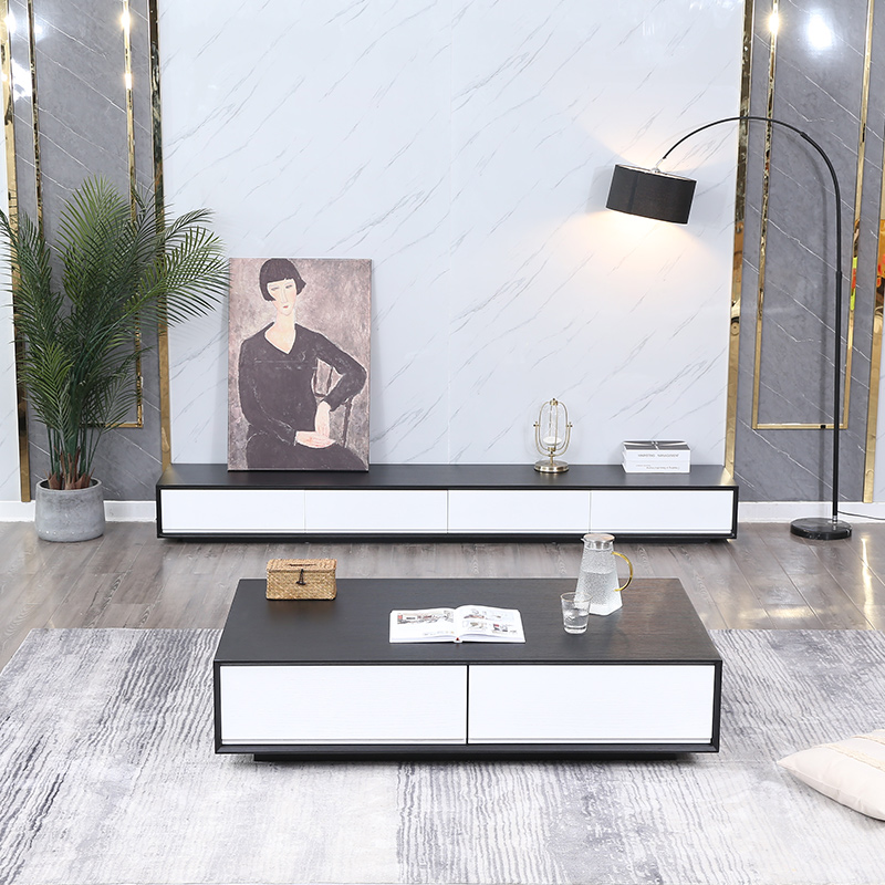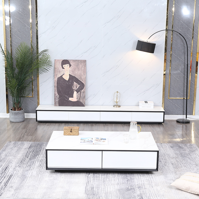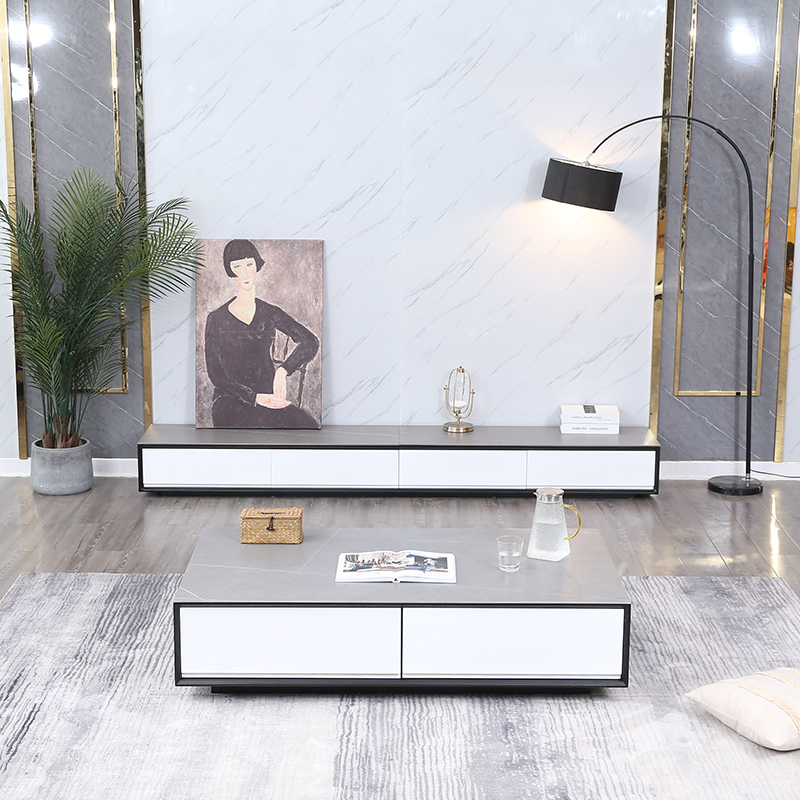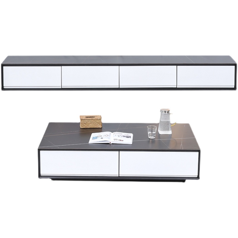 Pure solid wood rubber wood rock board TV cabinet coffee table combination simple modern light luxury living room small apartment TV cabinet
