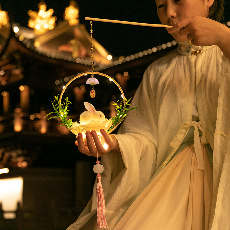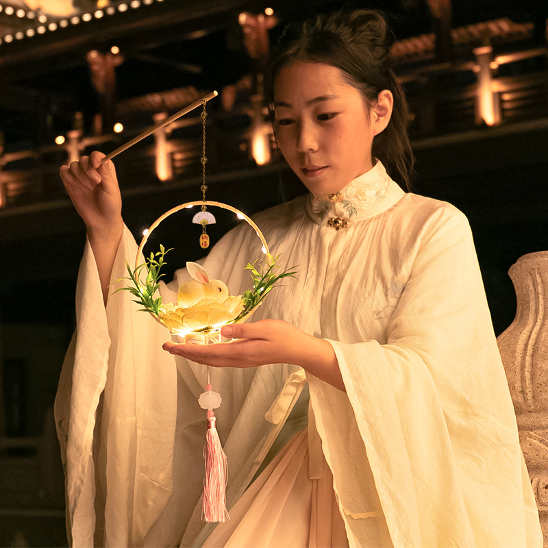 Kindergarten Children's Ancient Wind Props Handmade Diy Material Bag Moon Rabbit Lantern Hand Hanfu Lanterns for Autumn Flower Lights