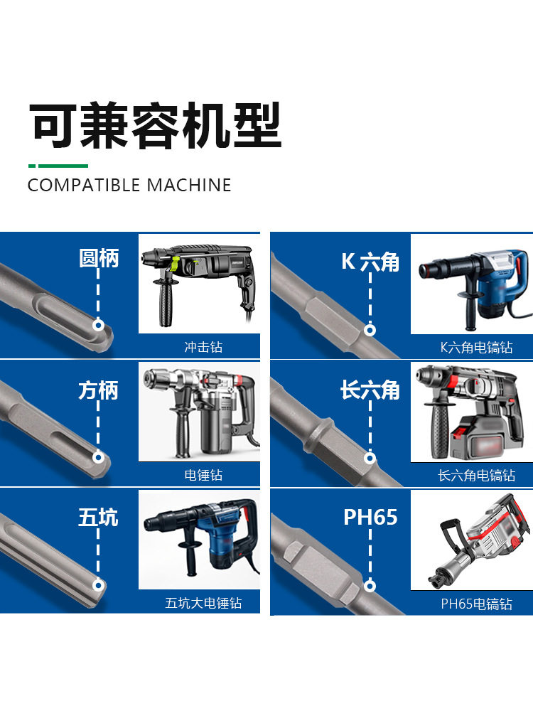 Electric hammer drill impact drill bit square round handle tip flat chisel pick drill with electric pick head shovel chisel to cut through wall drill