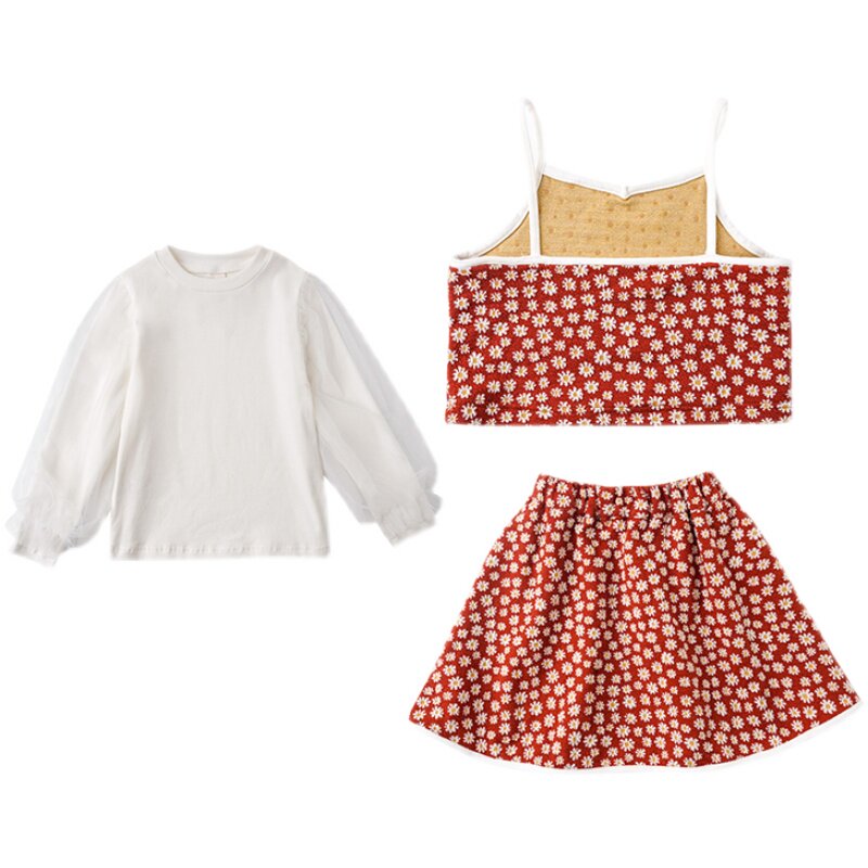 Ranran's Girl Net Red Set Korean Edition 2022 New Foreign Kids Fashion Children's Floral Suspender Three-Piece Set
