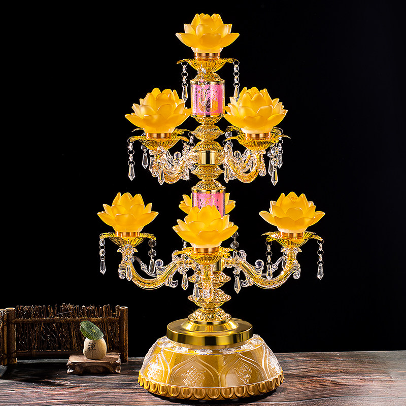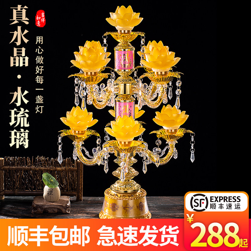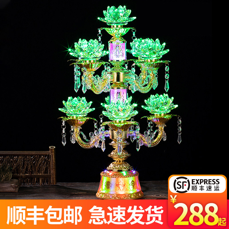 Led seven items of seven colored crystal glazed rotation for the Buddha's Lotus lamp Buddha for the lamp Guanyin Buddha Former long Ming lantern lotus lamp
