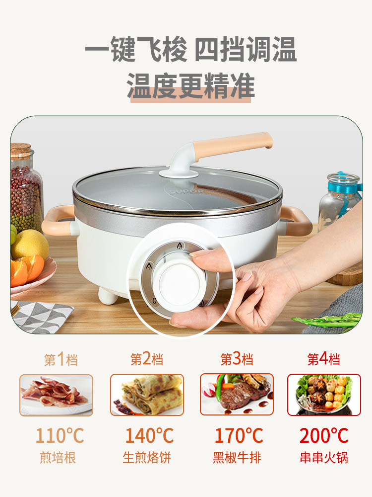 Supoir Yuanyang electric hot pot cooking pot household integrated multifunctional special electric pot quick cooking pot fried dish without dipping into the pan