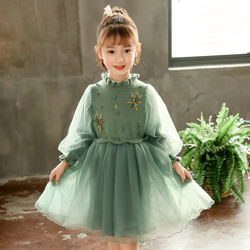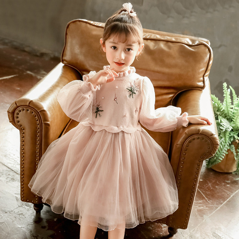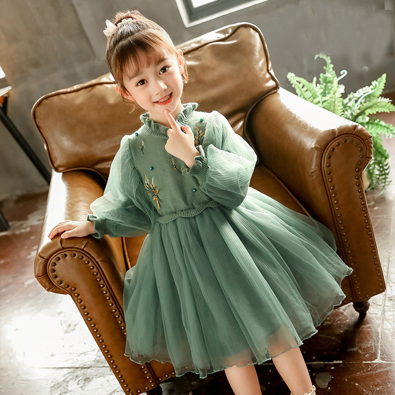 Next Long Girl Knit Sweater Princess Dress 2022 Spring Autumn Season Children Suit Foreign Gentchild Dress