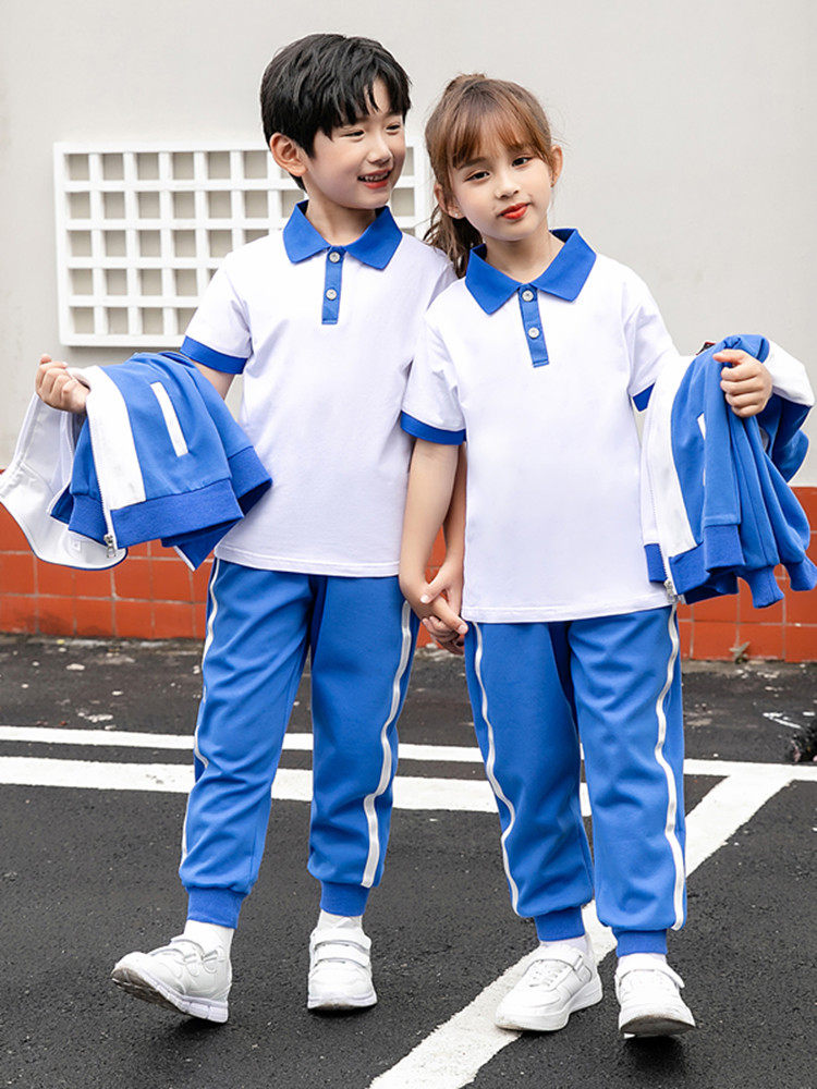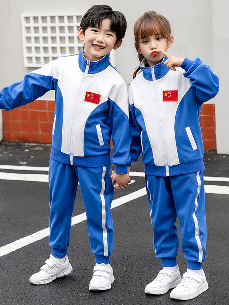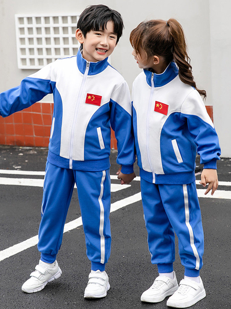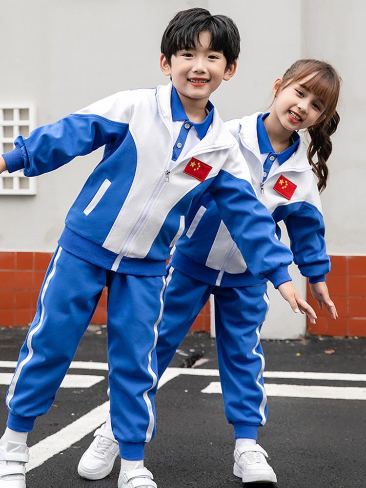 Children's sportswear autumn and winter long-sleeved casual suit boys and girls school uniform blue and white outdoor clothing zipper