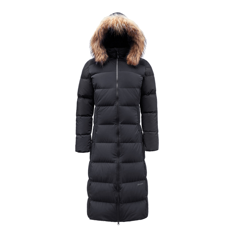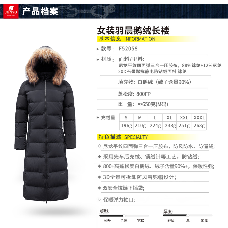 Junyu outdoor feather feather long knee fashion winter thickening heat 800 Pungle Velvet female F52058