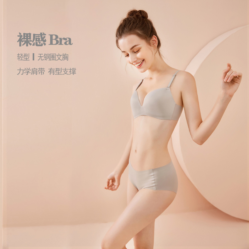 New thin section small chest gathered underwear without steel ring adjustment type closed breast bra seamless upper support glossy girl bra