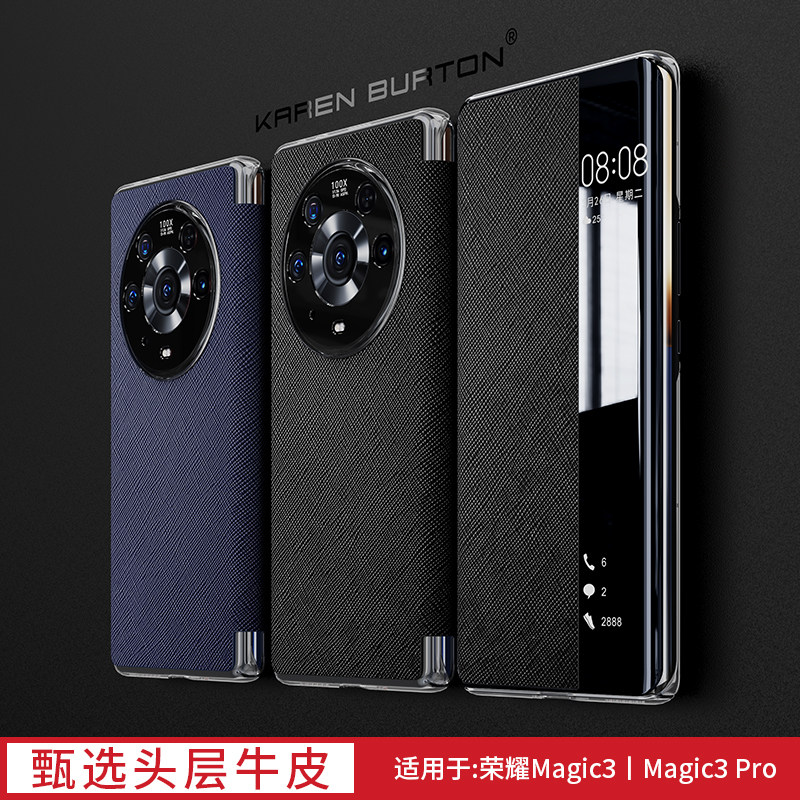Apply the new glory magic3pro mobile phone protection shell Magic3 flip full bag anti-fall protective sleeve magic3 to the new genuine leather shell to the esteem Magic3pro high