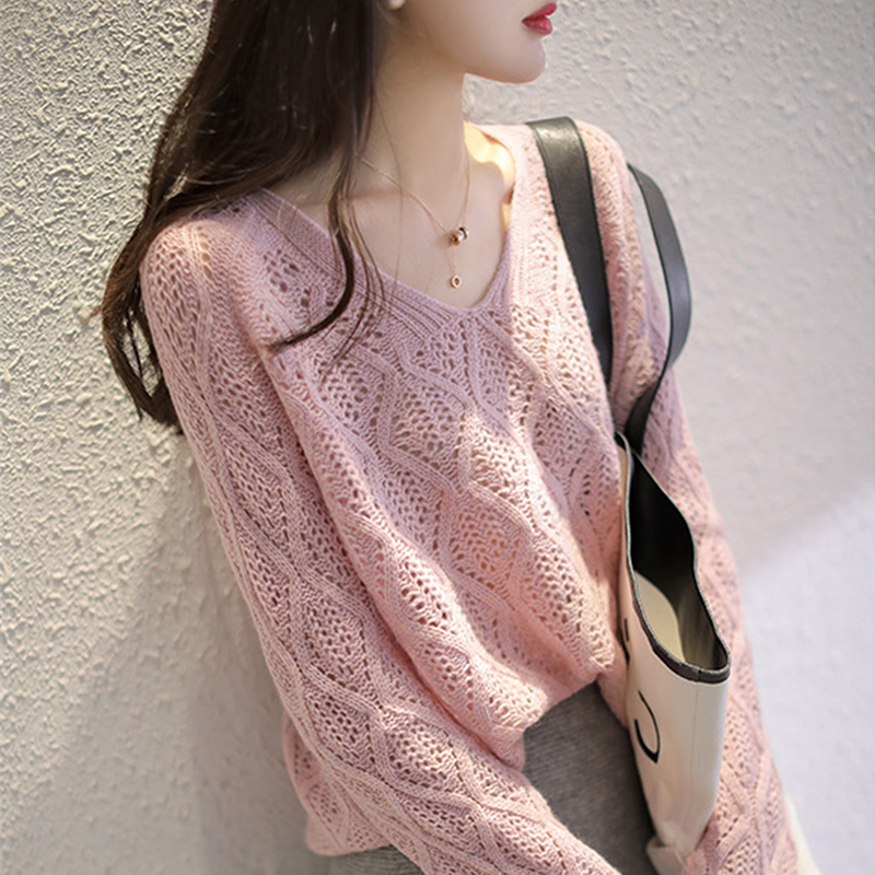 2021 autumn and winter New coat lazy wind sweater women loose wear Joker cashmere hollow knitted base shirt Women