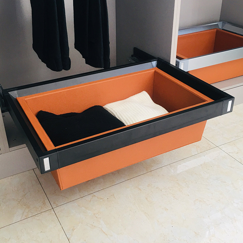 Cabinet pull-out pants frame Wardrobe Pull Basket Damping containing leather Shoulé box Plaid frame Drawer Pull Trinket Box-Taobao