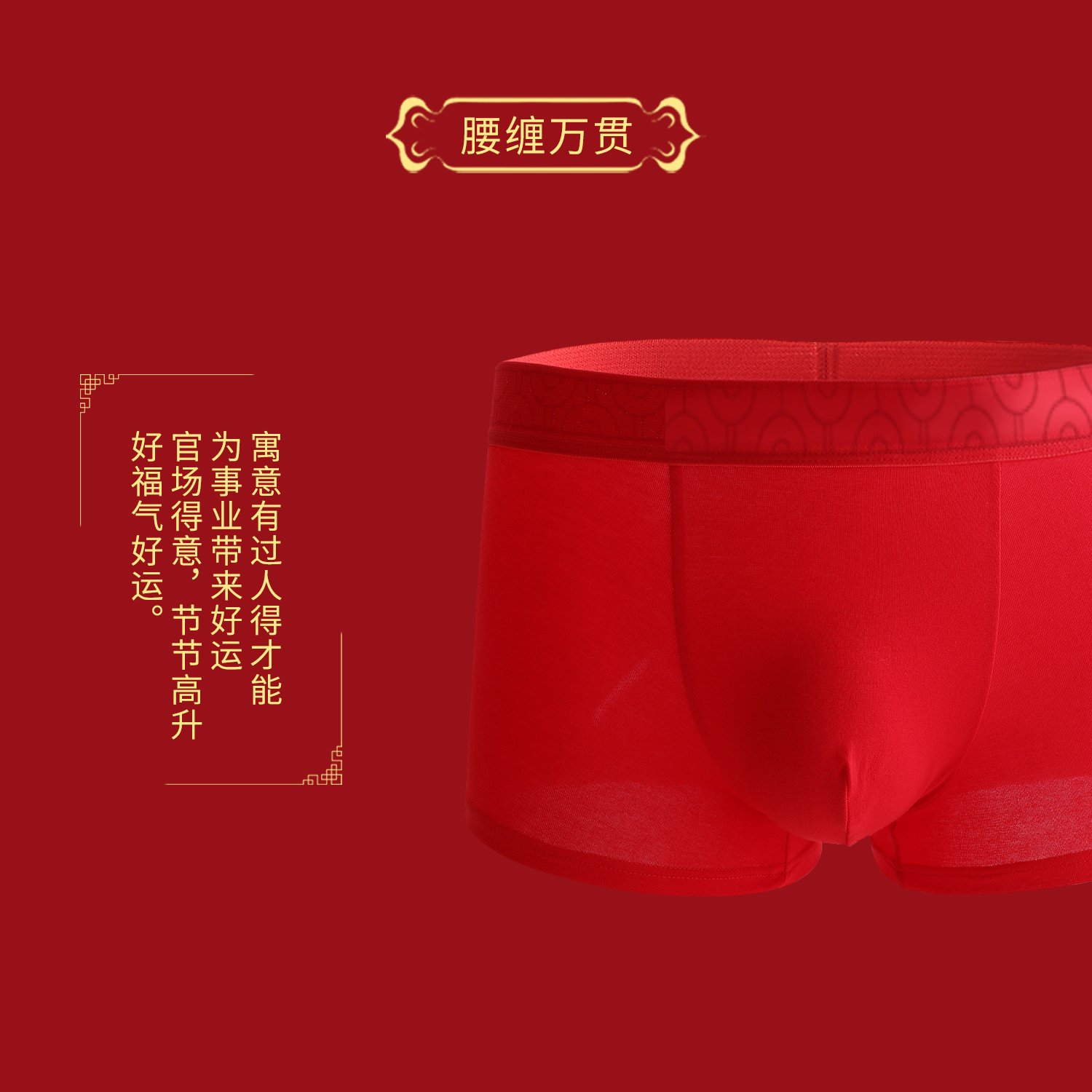 Red Underwear Man's Life Flat Angle Pure Cotton Wedding Gift Four Corner Shorts Belong To Tiger 2021 New Men's Gift Box Dress