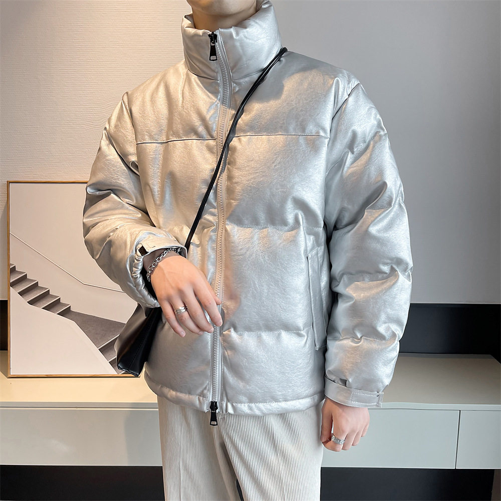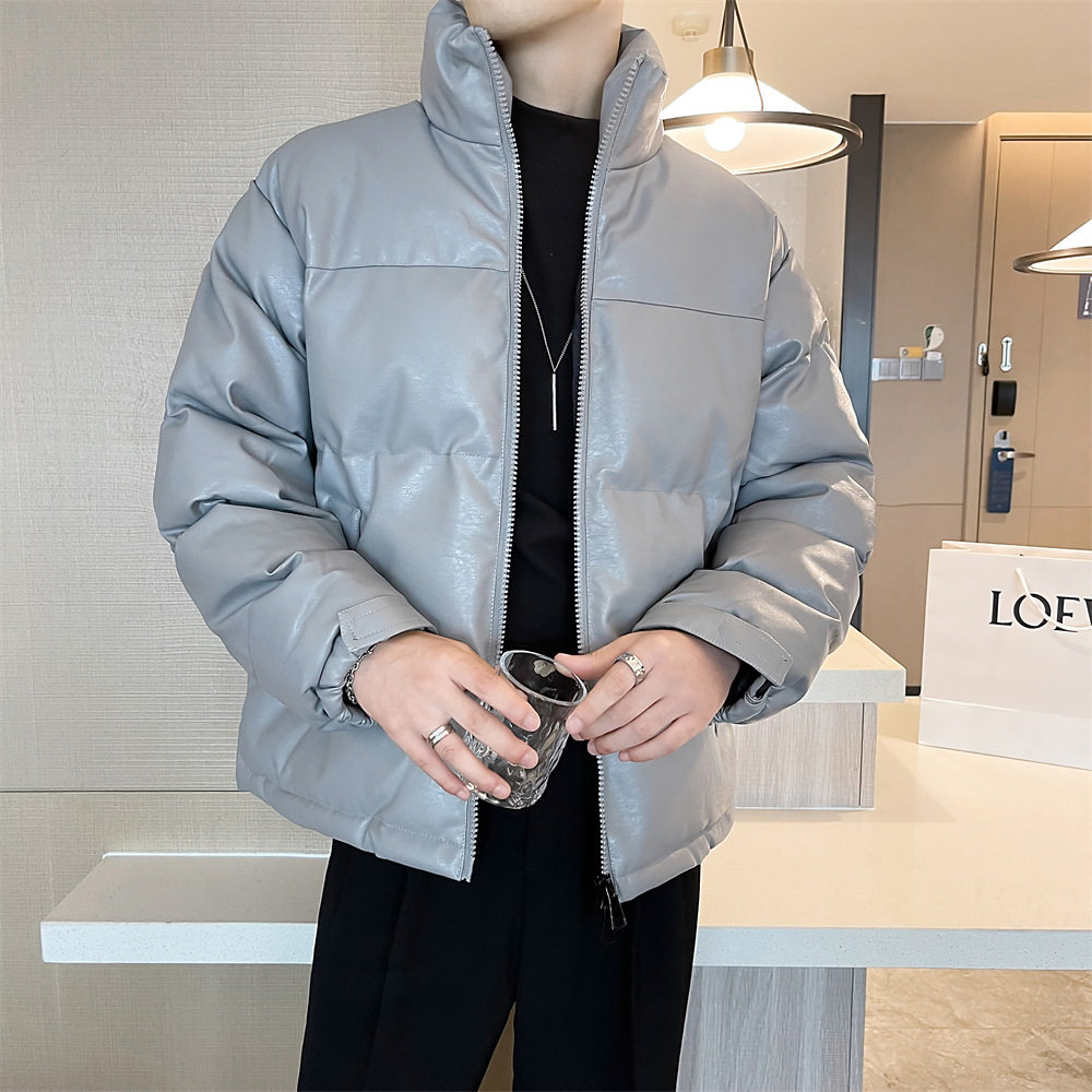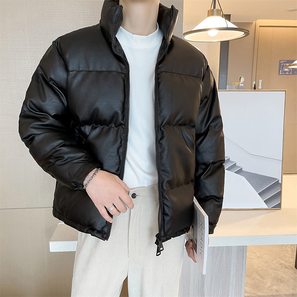 Stand-up collar cotton jacket men's winter pu lint cotton jacket men's Korean version of casual loose bread clothes boys trend cotton clothes