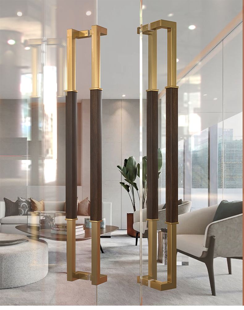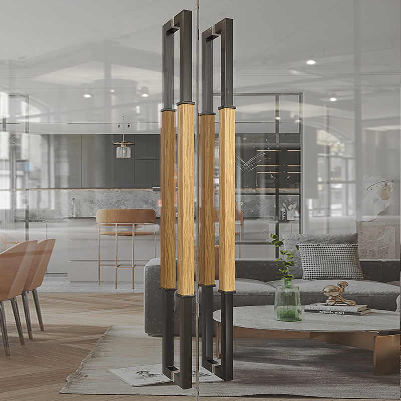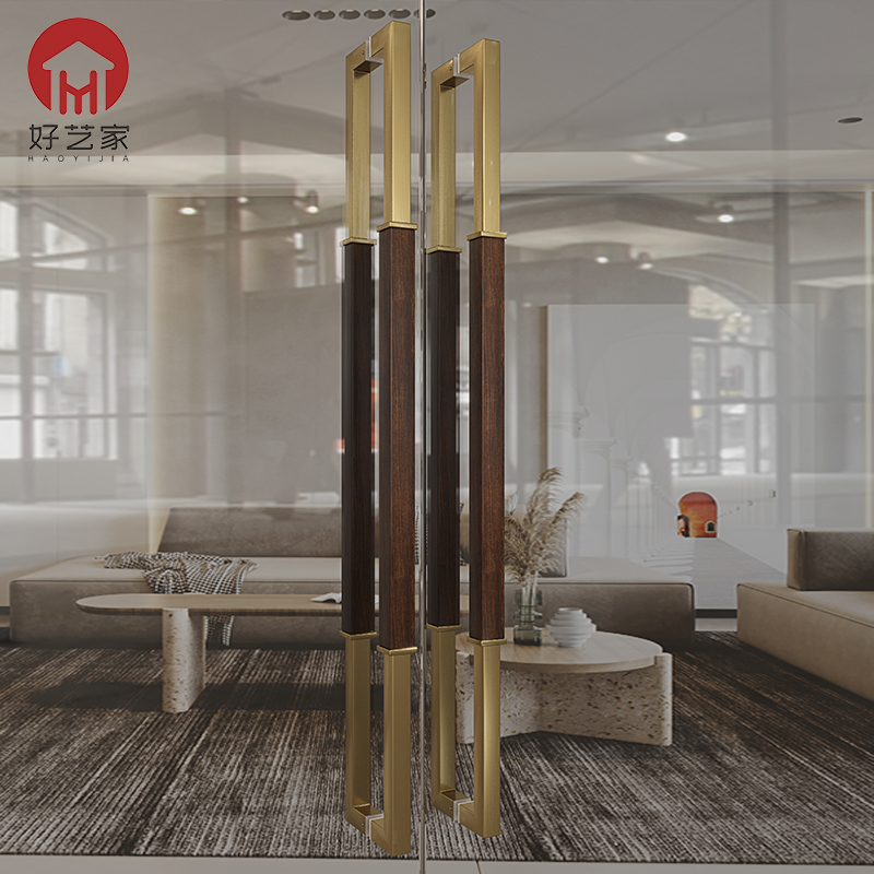 Minimalist golden glass door door handle Chinese style modern stainless steel framed door black walnut solid wood door handle