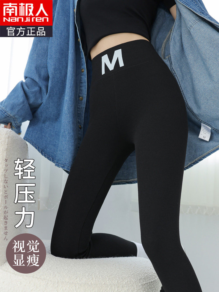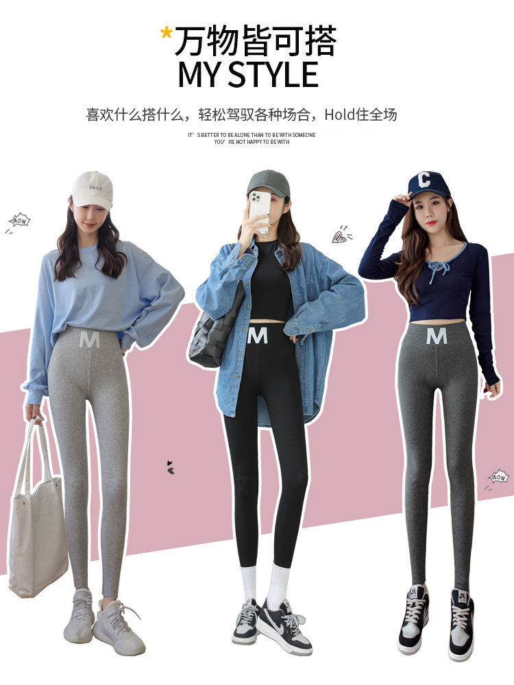 2022 new spring and autumn winter plus velvet gray threaded leggings women's outerwear high waist slimming large size long johns elastic