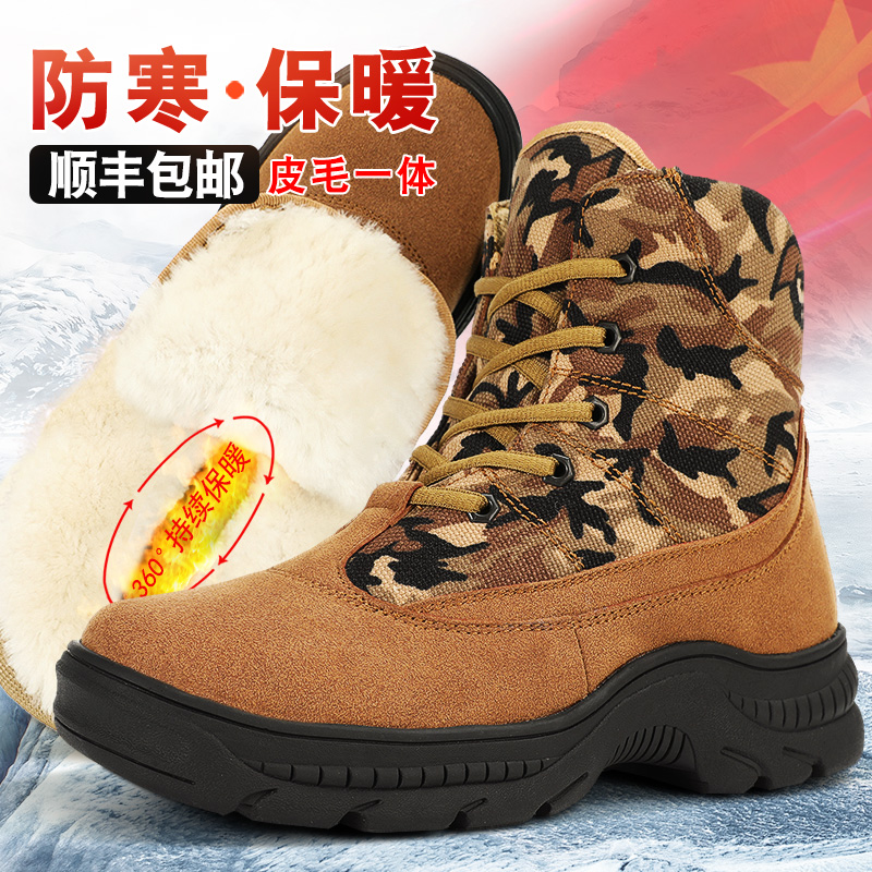 Wool Snowshoeing Boots Man Winter Thickened Warm High Cylinder Cotton Shoes Men's Northeast Cotton Boots Anti-Chill Boots Man Waterproof Non-slip Boots
