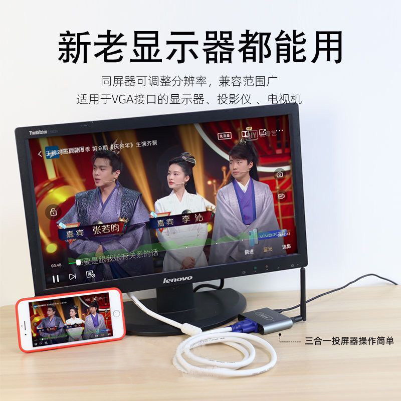 Mobile phone connected to monitor wireless high-definition 4K with screen frequency suitable for Android Apple projection screen old TV projector 5G