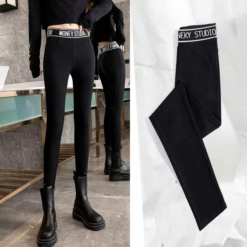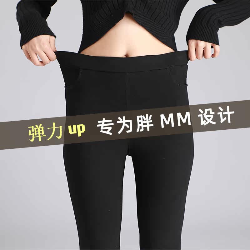 Black inner lap pants female outside wearing spring autumn and winter plus suede thin section 80% small taller size pencil magic smoke pipe pants