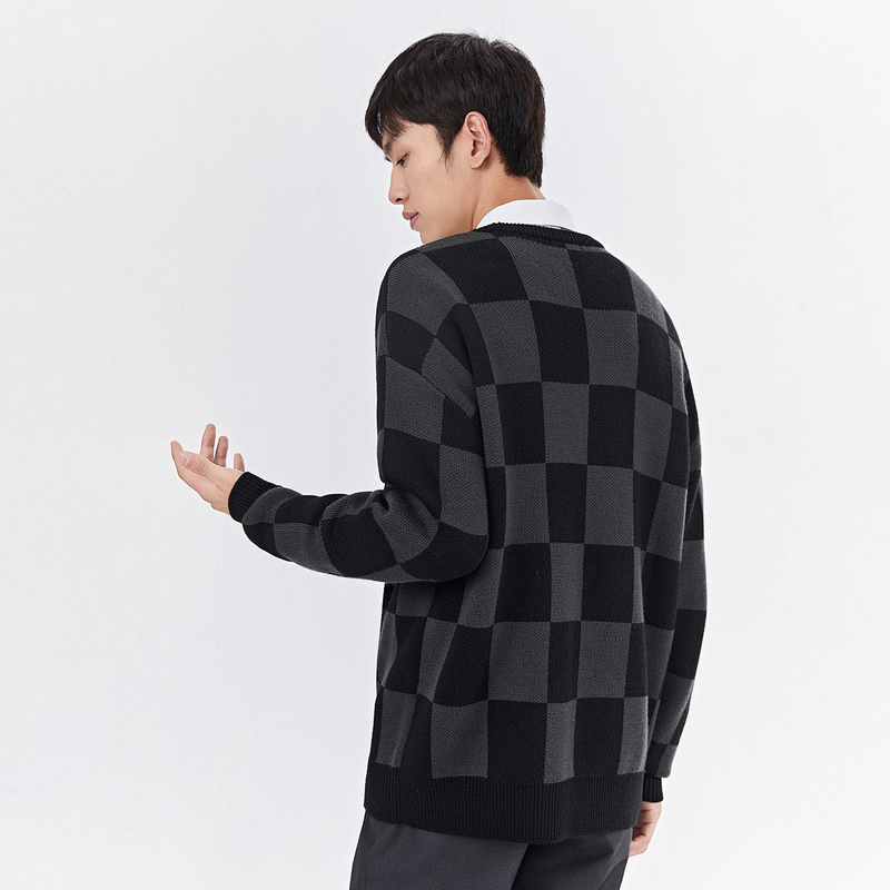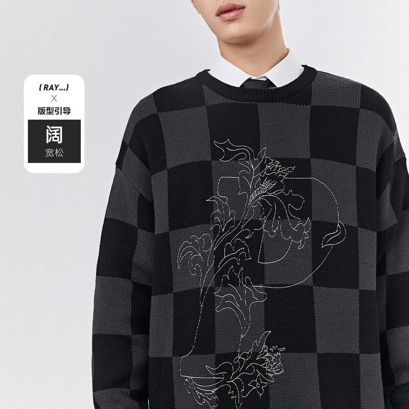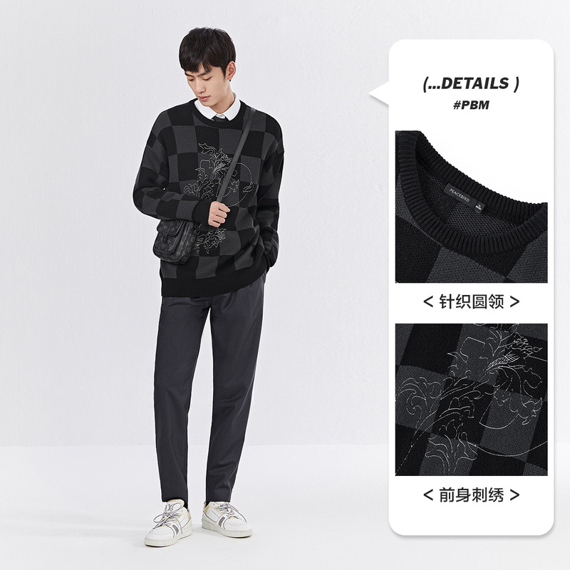 Taiping Bird Men's sweater men's embroidered sweater wool pullover autumn and winter checkerboard fashion round neck coat tide