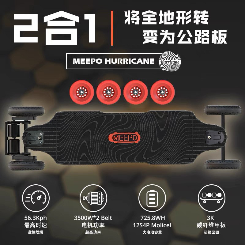 MEEPO Hurricane Electric Skateboard All-terrain Cross-country Electric Skateboard Land Surfboard Remote Control Long Endurance Meter Wave Mippo