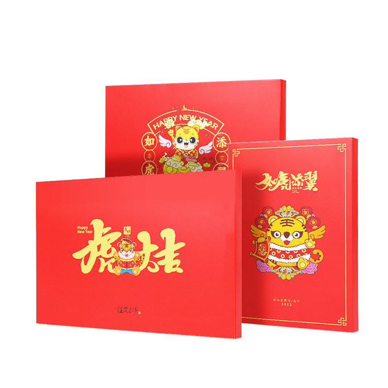 2022 Tiger Year Enterprise Table Calendar Packaging Box Printed Gift Box Customized Bronzing China Red Carton Packaging