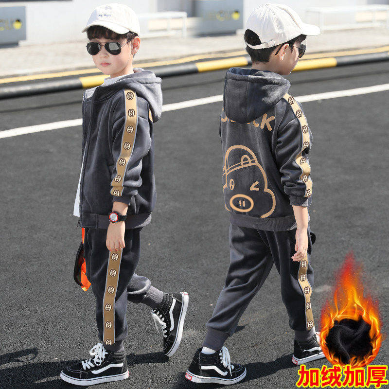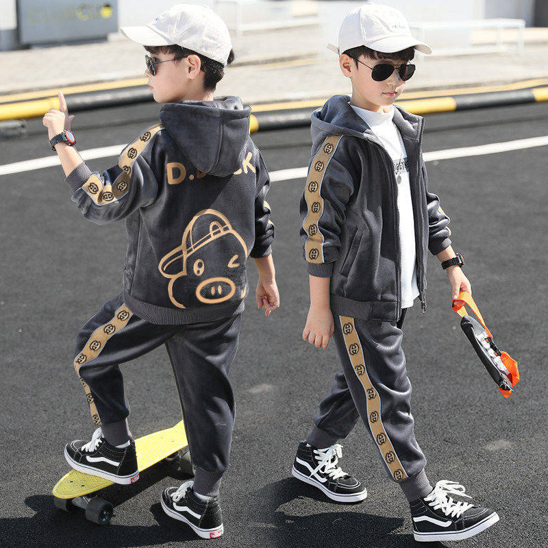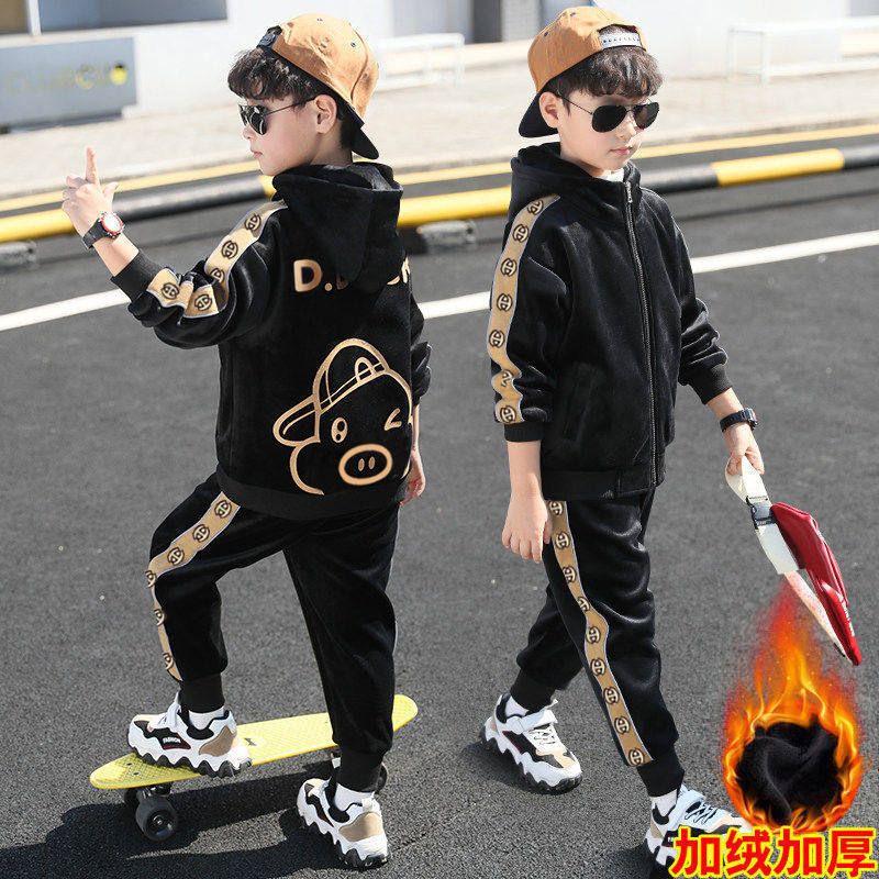 Boys' autumn and winter gold velvet thickening suit 2021 new children's winter plus velvet two-piece Korean version