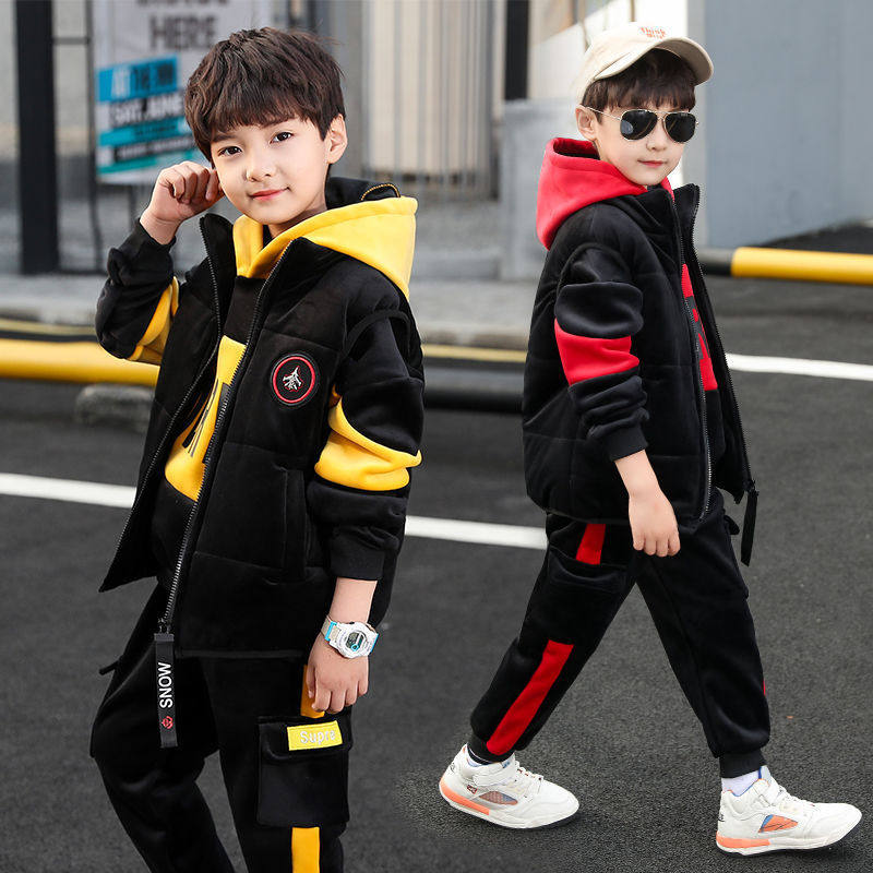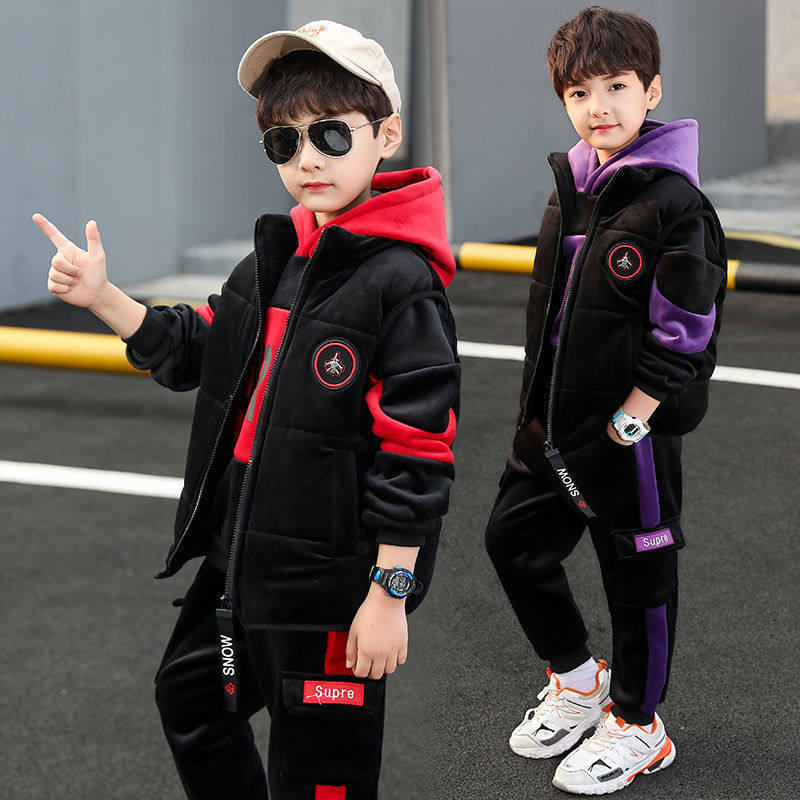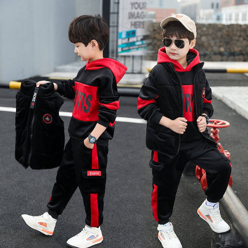 Children's clothing men's winter gold velvet three-piece sweater warm middle-aged children's autumn and winter plus velvet thickened Western style suit