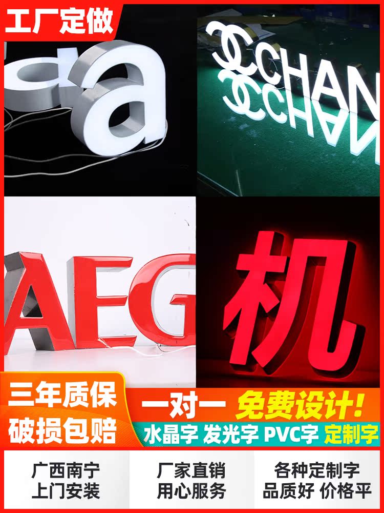 Stainless steel luminous characters Back luminous characters Boundless luminous characters Mini luminous characters Seiko characters PVC characters Crystal characters Various types of luminous characters customization