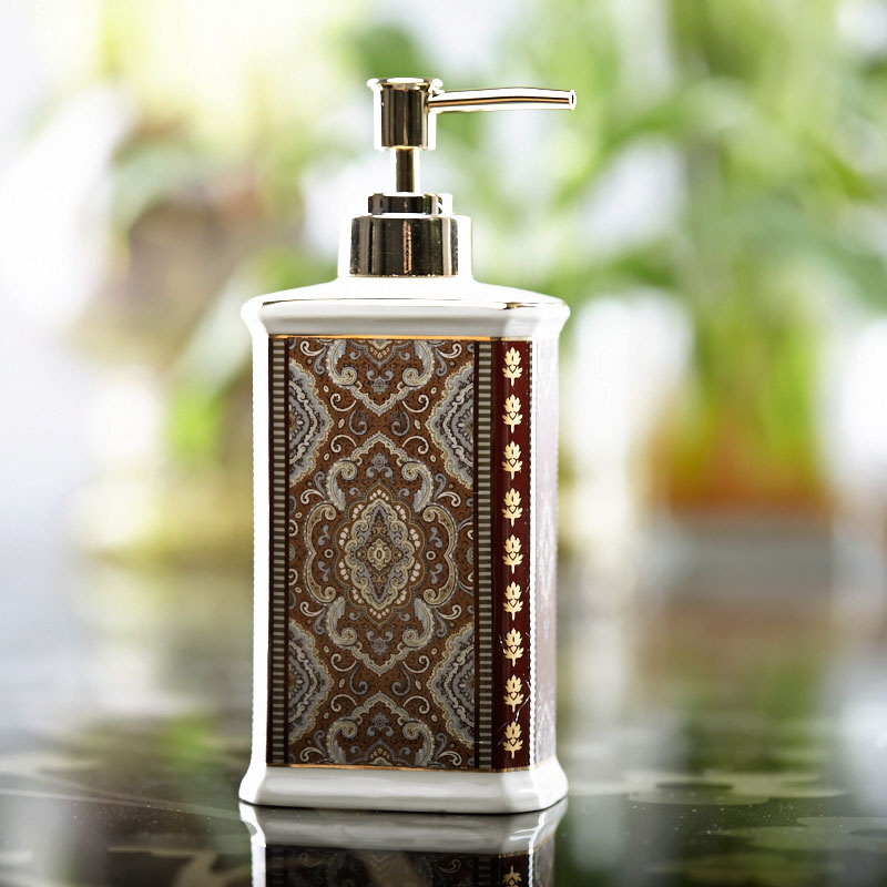 Ceramic European home decoration desktop decoration geometric pattern retro beauty printing Corona sanitary bathroom 5 piece set