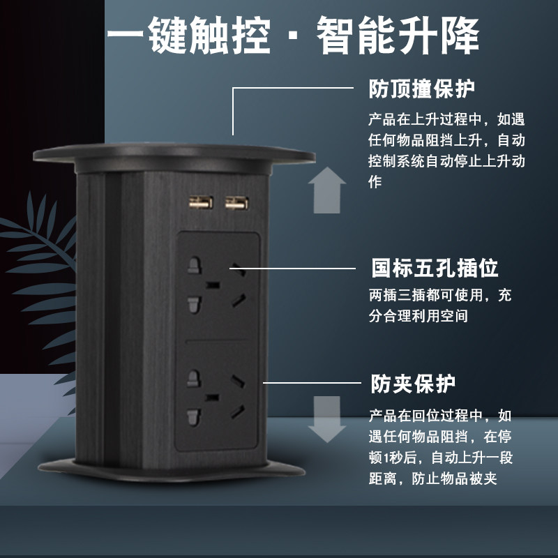 Lifting socket island table embedded kitchen desktop automatic power supply wireless charging electric smart Hunos plug-in