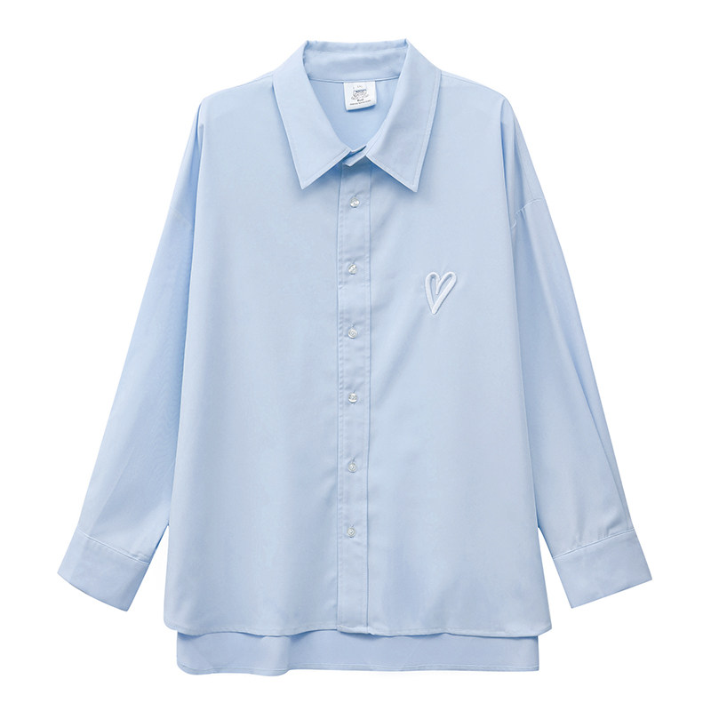 YUZI fisher family spring new large size shirt blue medium long version Fat mm Loving Embroidered loose Slim Shirt Woman