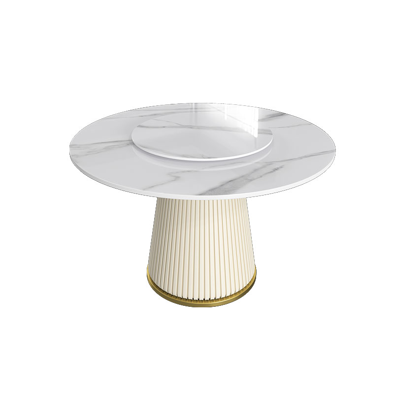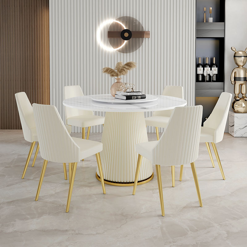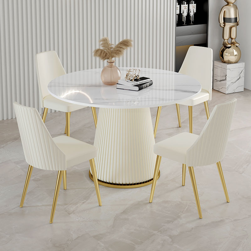 Modern minimalist light and luxurious high-end bright light rock plate round table home small family type rock plate dining table and chairs combined round