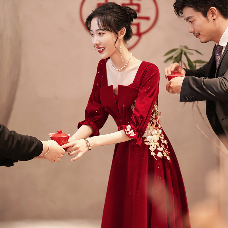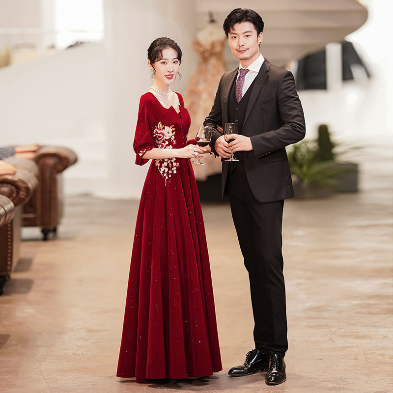 Large size toast to the bridal gown 200 catty plus fat Enlarged Banquet Temperament Fat Mm Night Dresses Foreign Dress can be worn normally