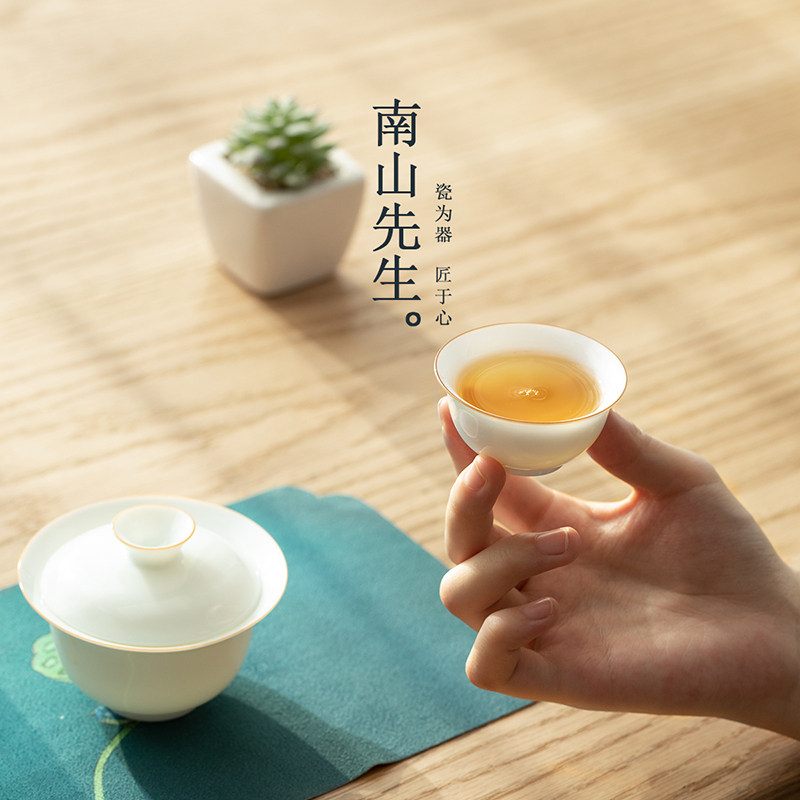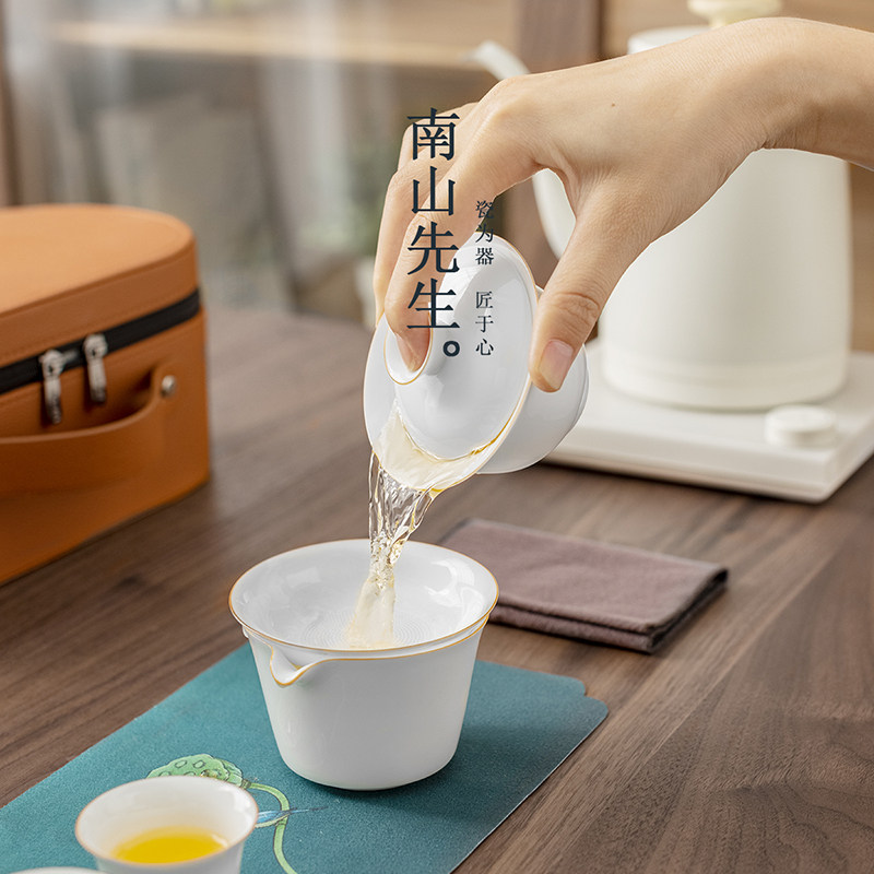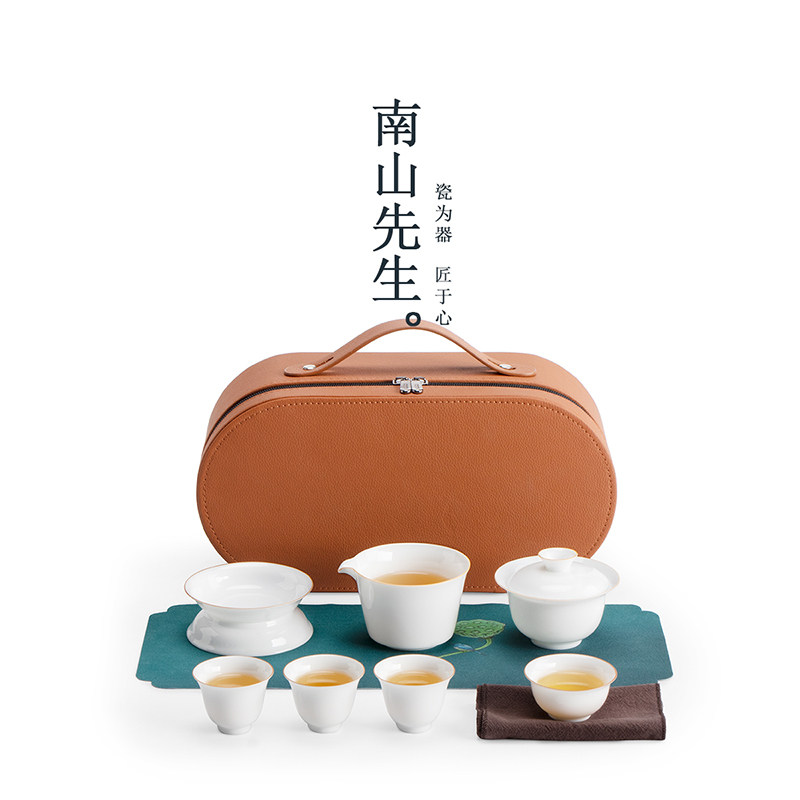Mr. Nanshan Sweet White Travel Kung Fu Tea Set Portable Quick Cup Outdoor Tea Cover Bowl Set Camping Tea Set