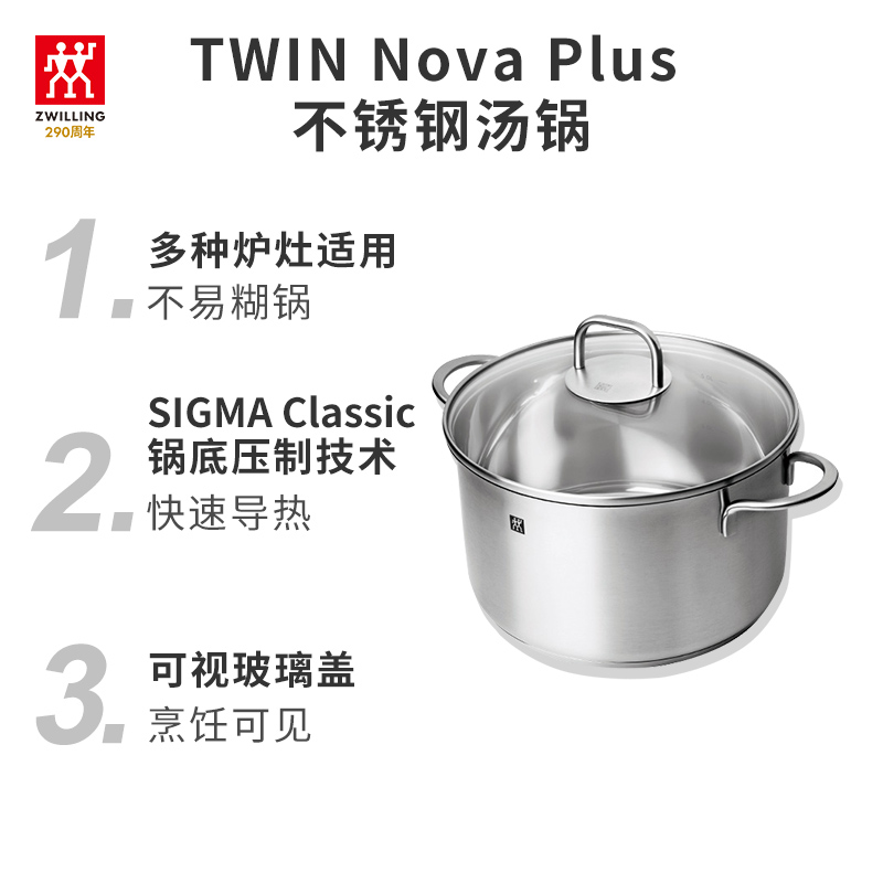 German double stainless steel soup pot soup pot saucepan Nova Plus24cm deep burning pan