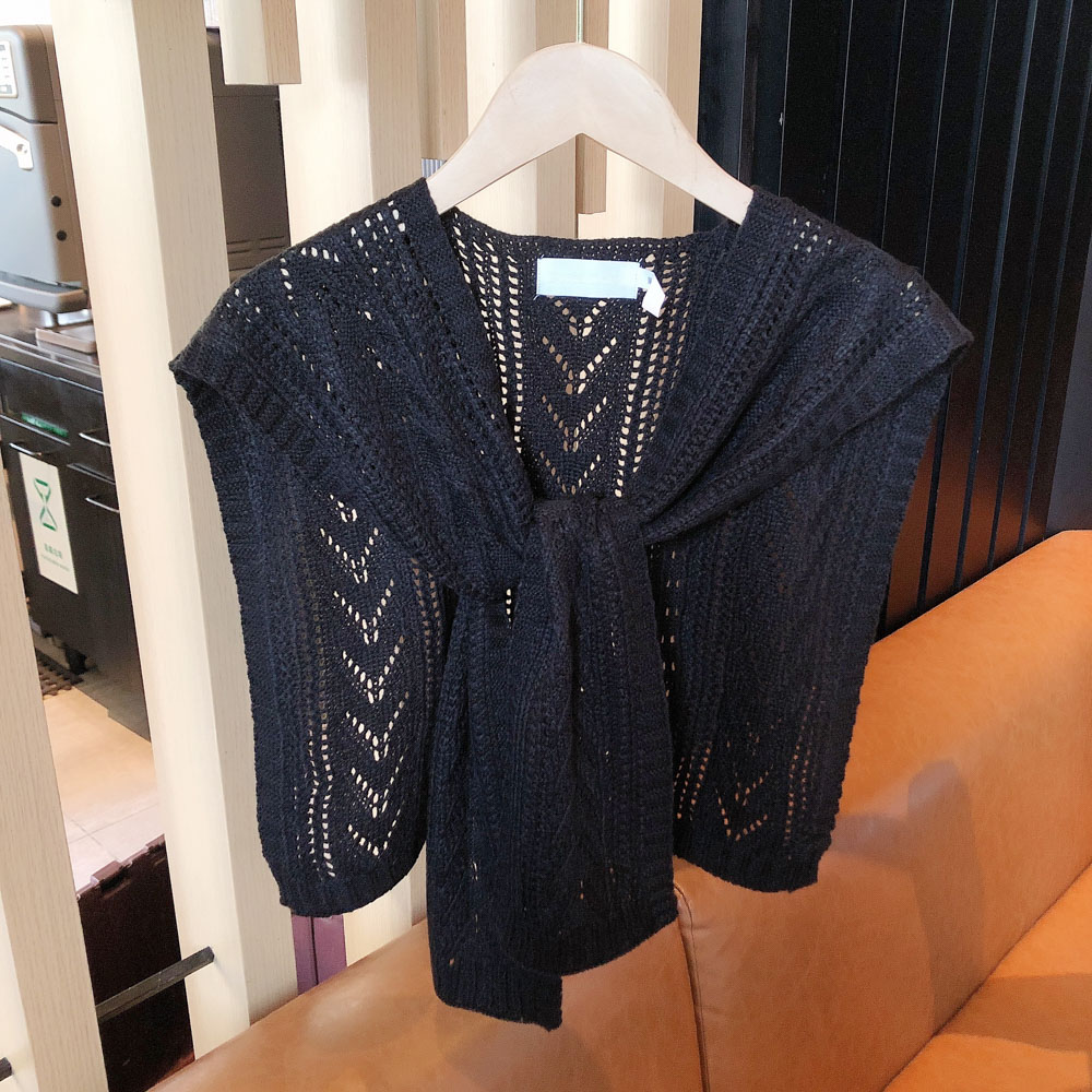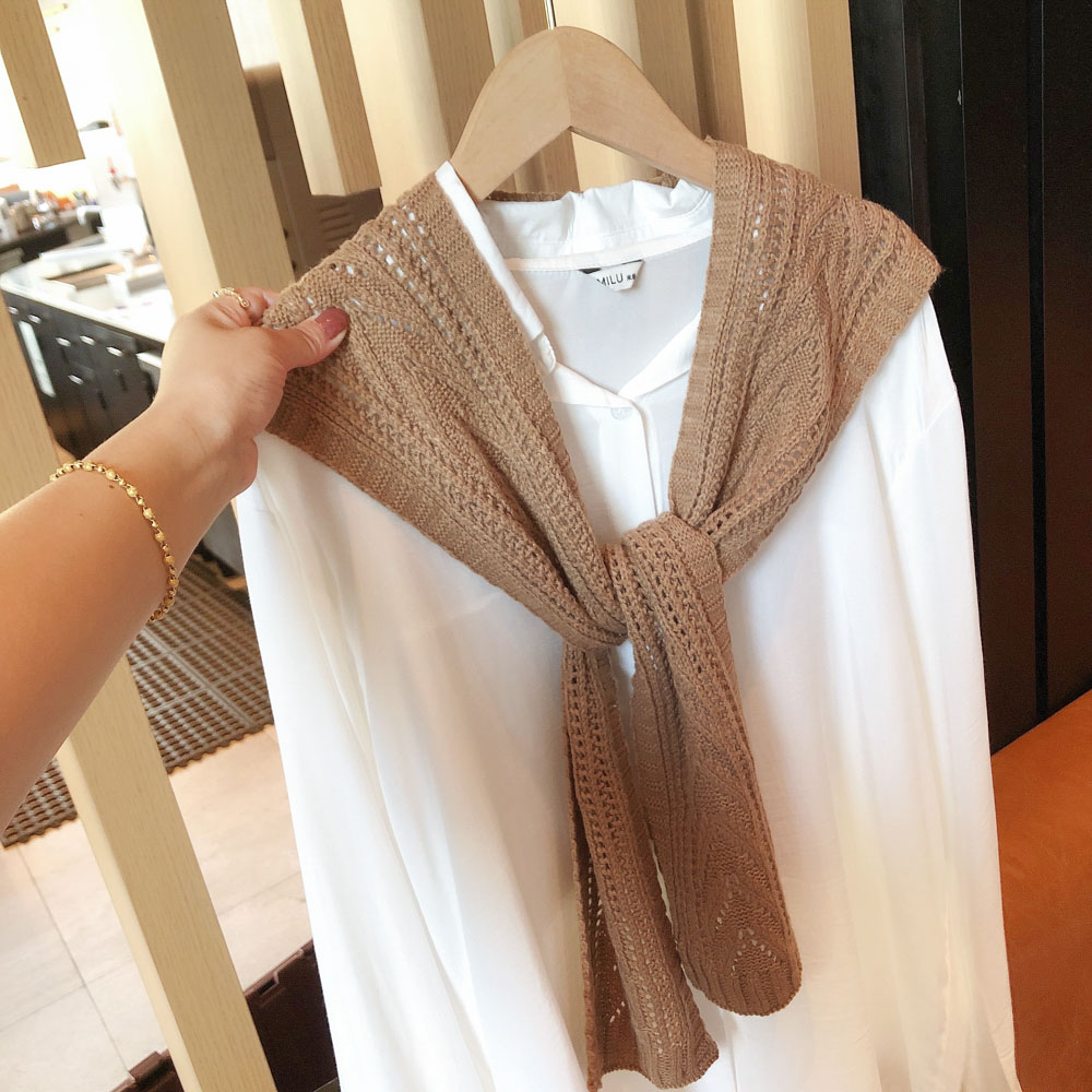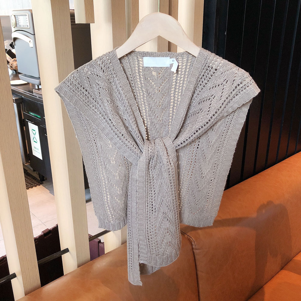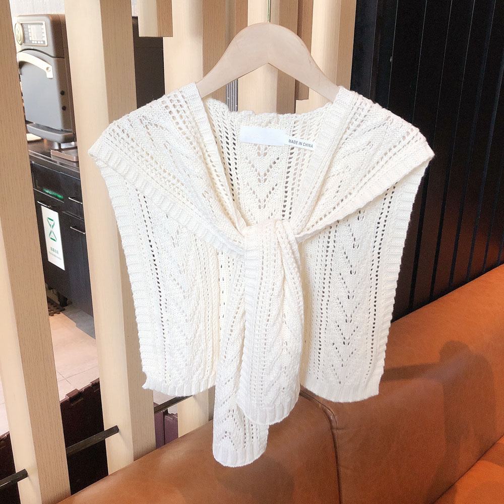 Summer Thin Knitting Crochet Wool Shawl Hollow Outer Net Red Fake Collar Vest Shoulder Spring and Autumn Versatile Scarf Women