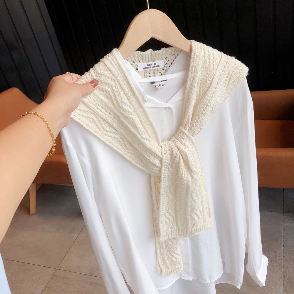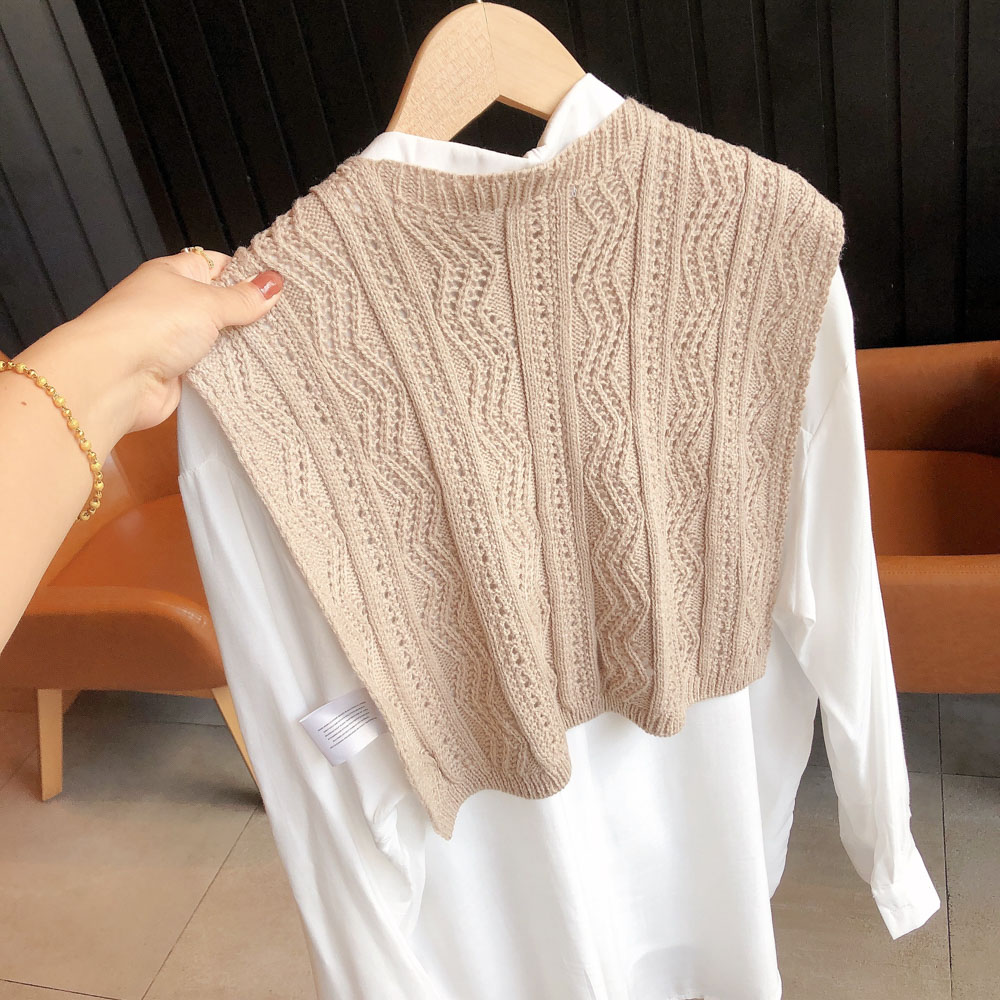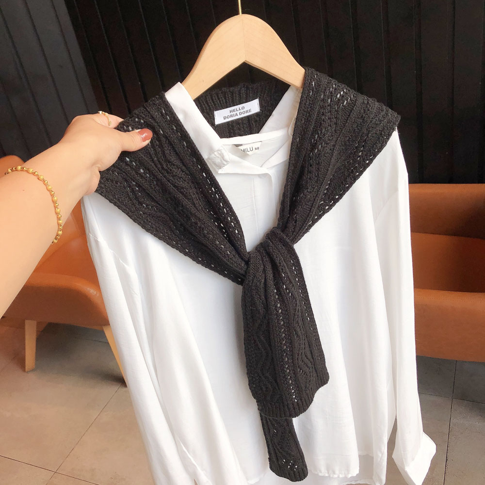 Spring and autumn knitted hollow shawl with net red shirt shoulder summer fake collar knotted vest decorative scarf female