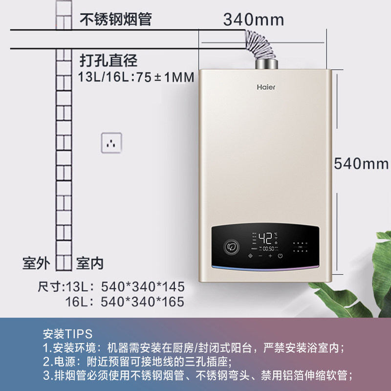 Haier's new gas water heater electric household gas constant temperature 13L 16 liters TM3 intelligent energy-saving strong row